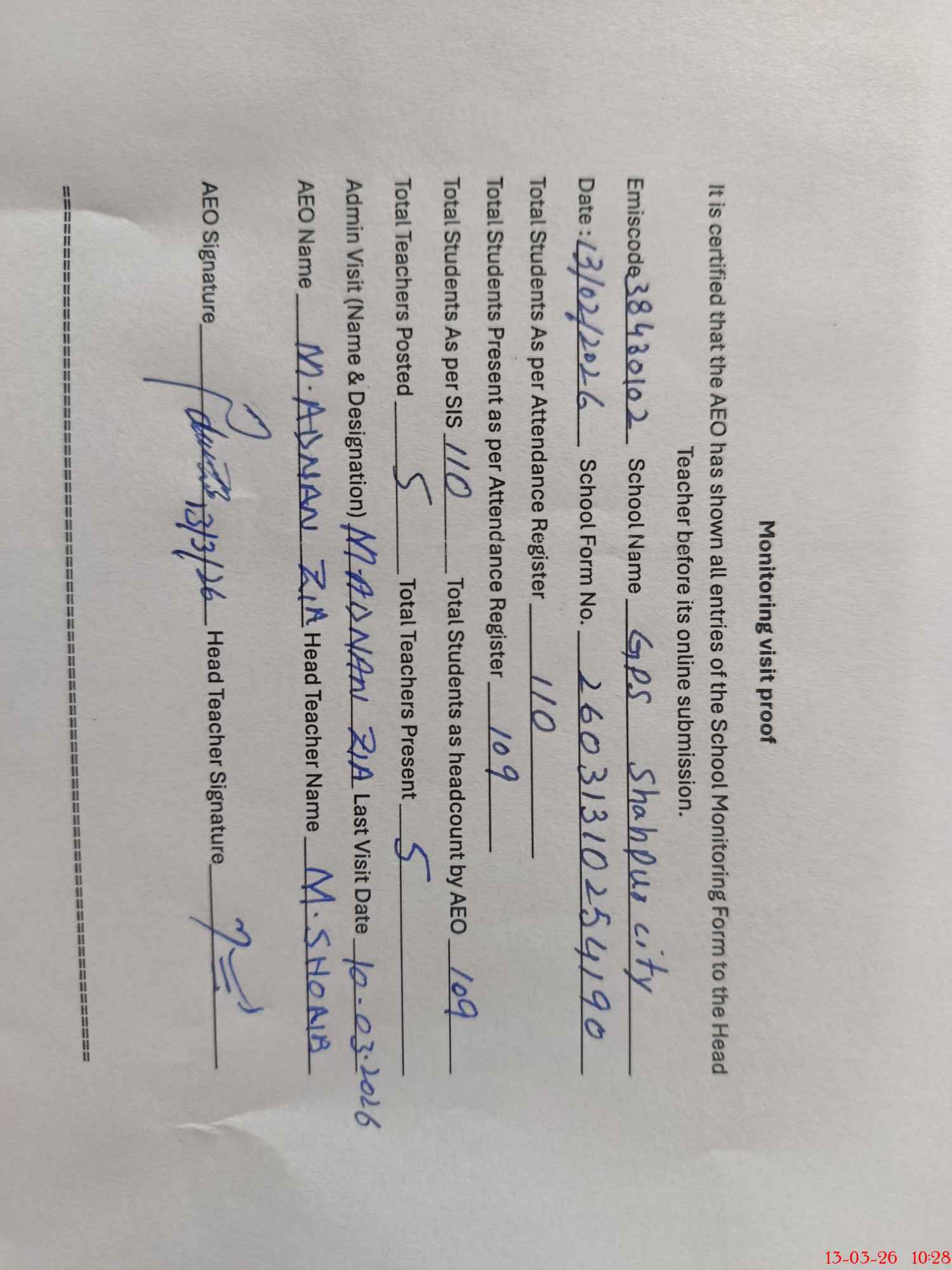 | EMIS Code: 38430102 | Name of School: GPS SHAHPUR CITY | |||