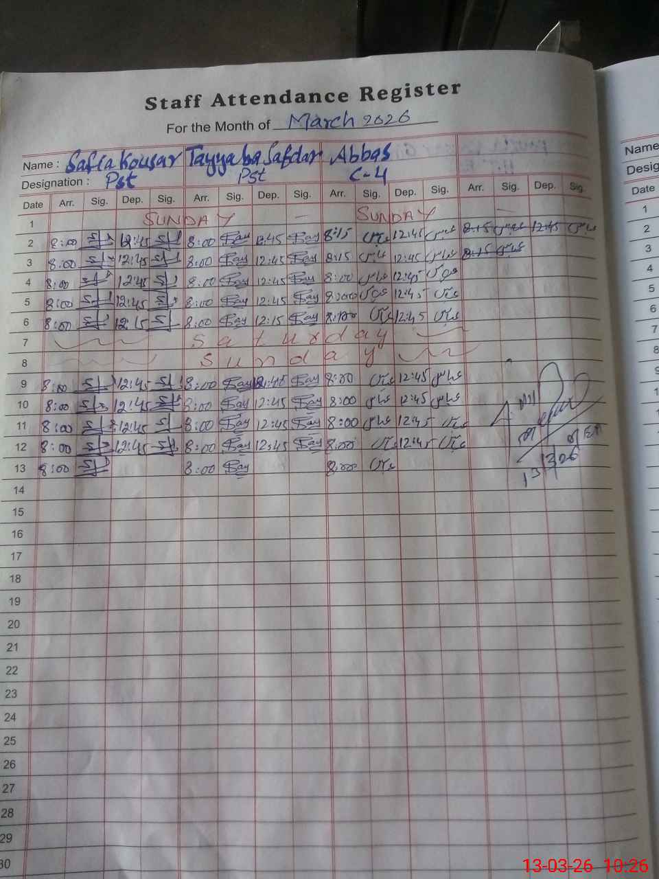 | CNIC | Full Name | Designation | R/C | Absence During Last Calender Month |