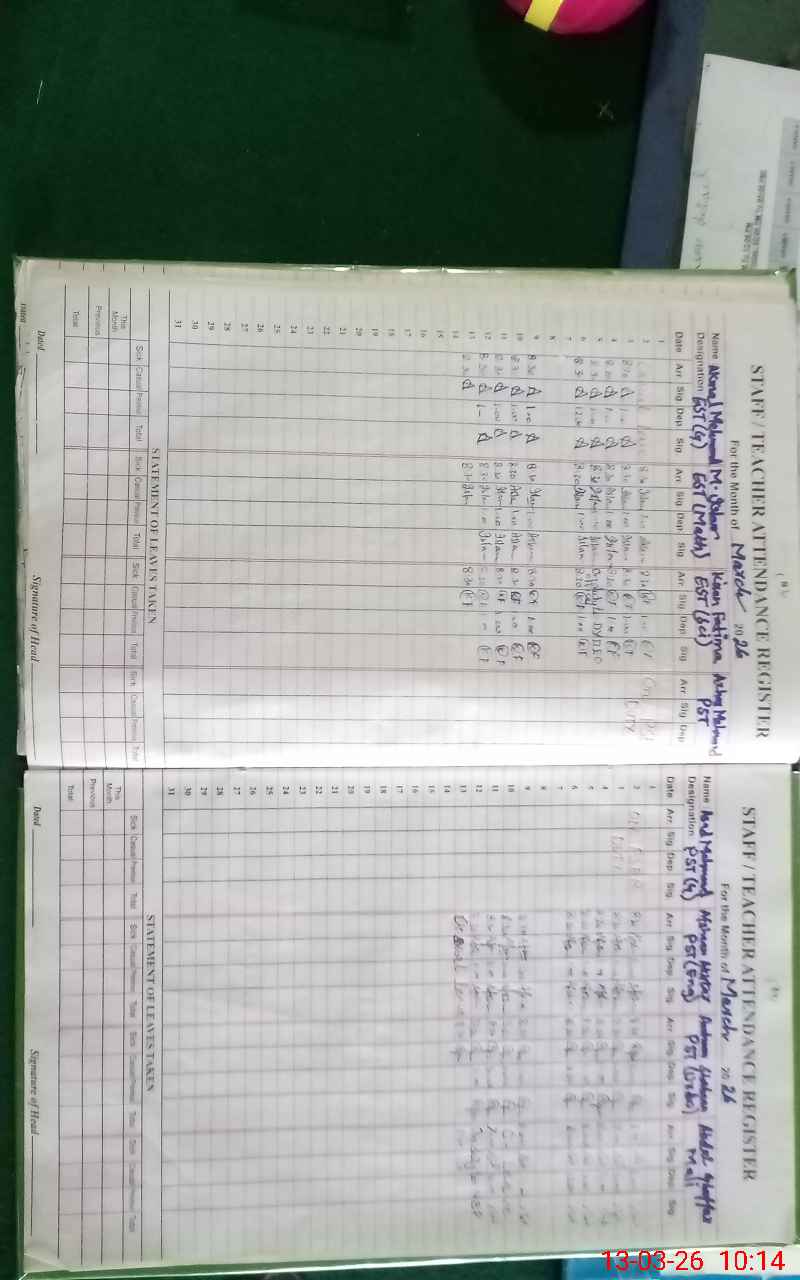 | 37**** | Az**** Ma**** | PST Arts | Regular | 0 | 0 | 0 | 0 | 0 | 0 | 0 | 0 | 0 | Exam Duty |