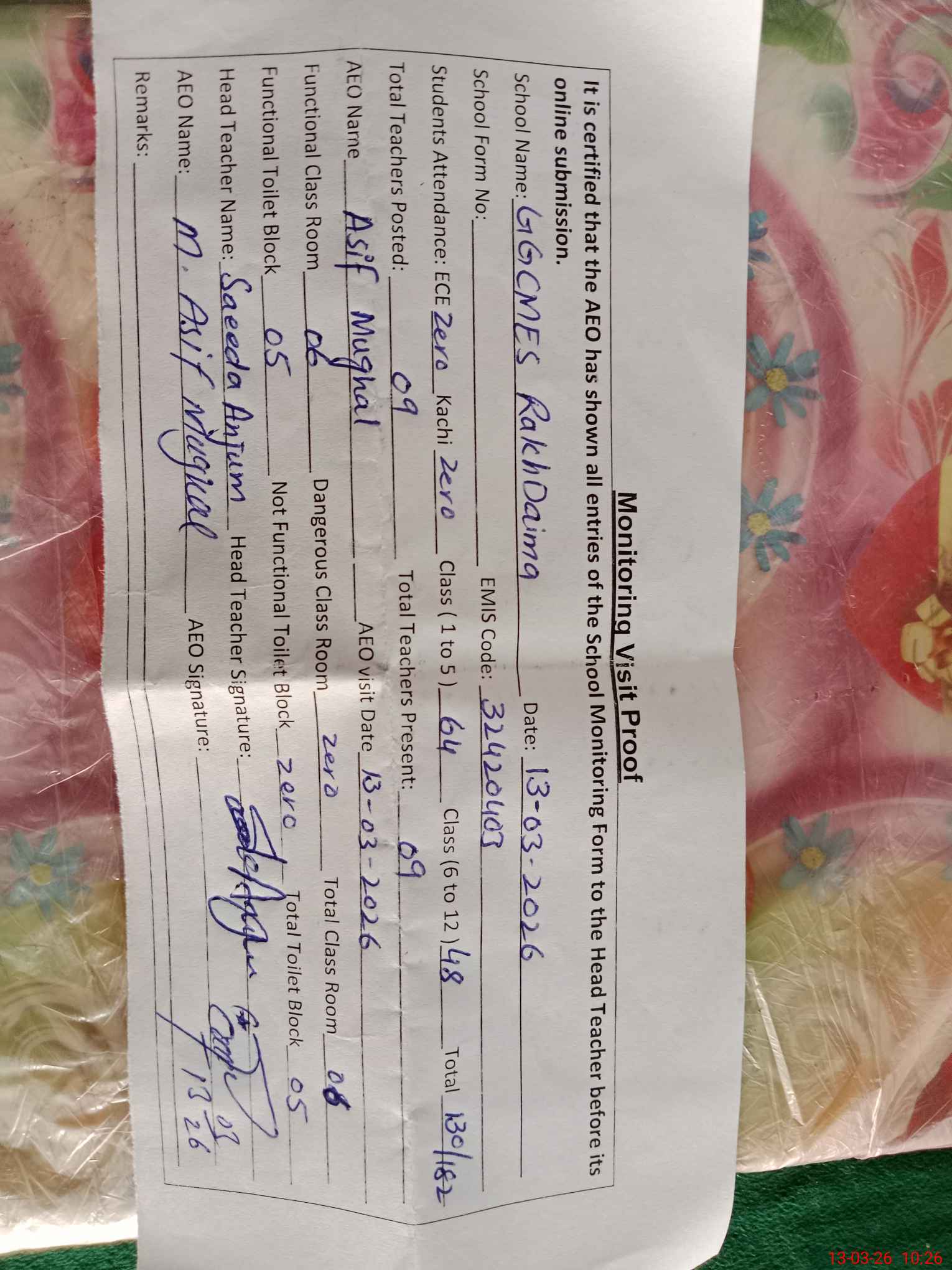| EMIS Code: 32420403 | Name of School: GGCMES RAKH DAMA | |||