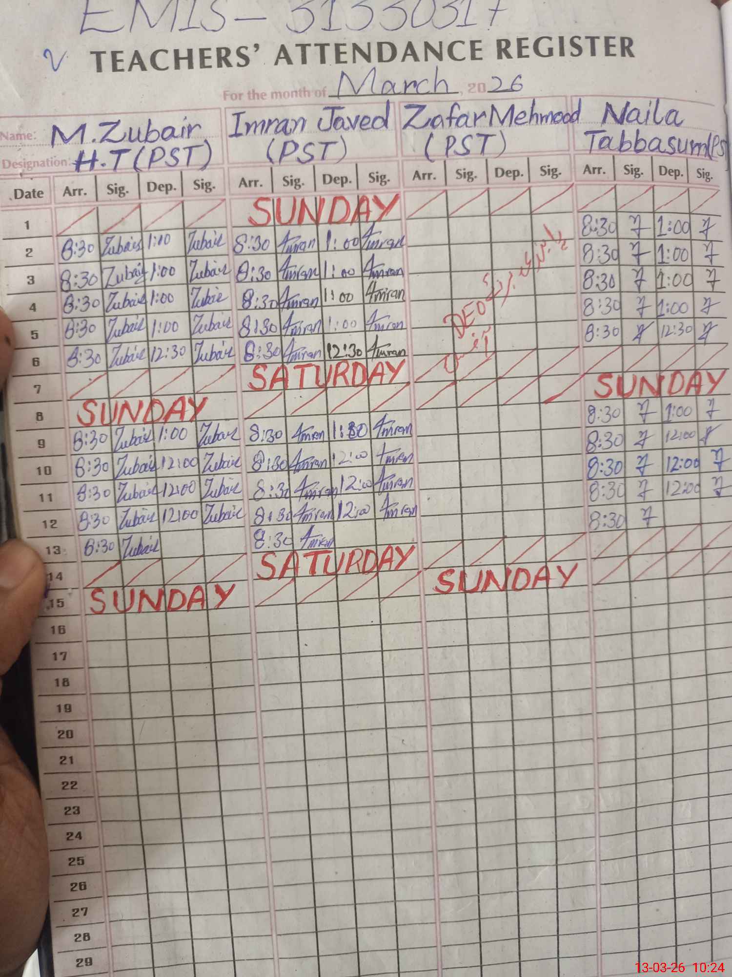 | Name: M.**** Designation: (School Headmaster's/Headmistress's) PST (SCI-MATH) Phone/Cell Number: 03**** |