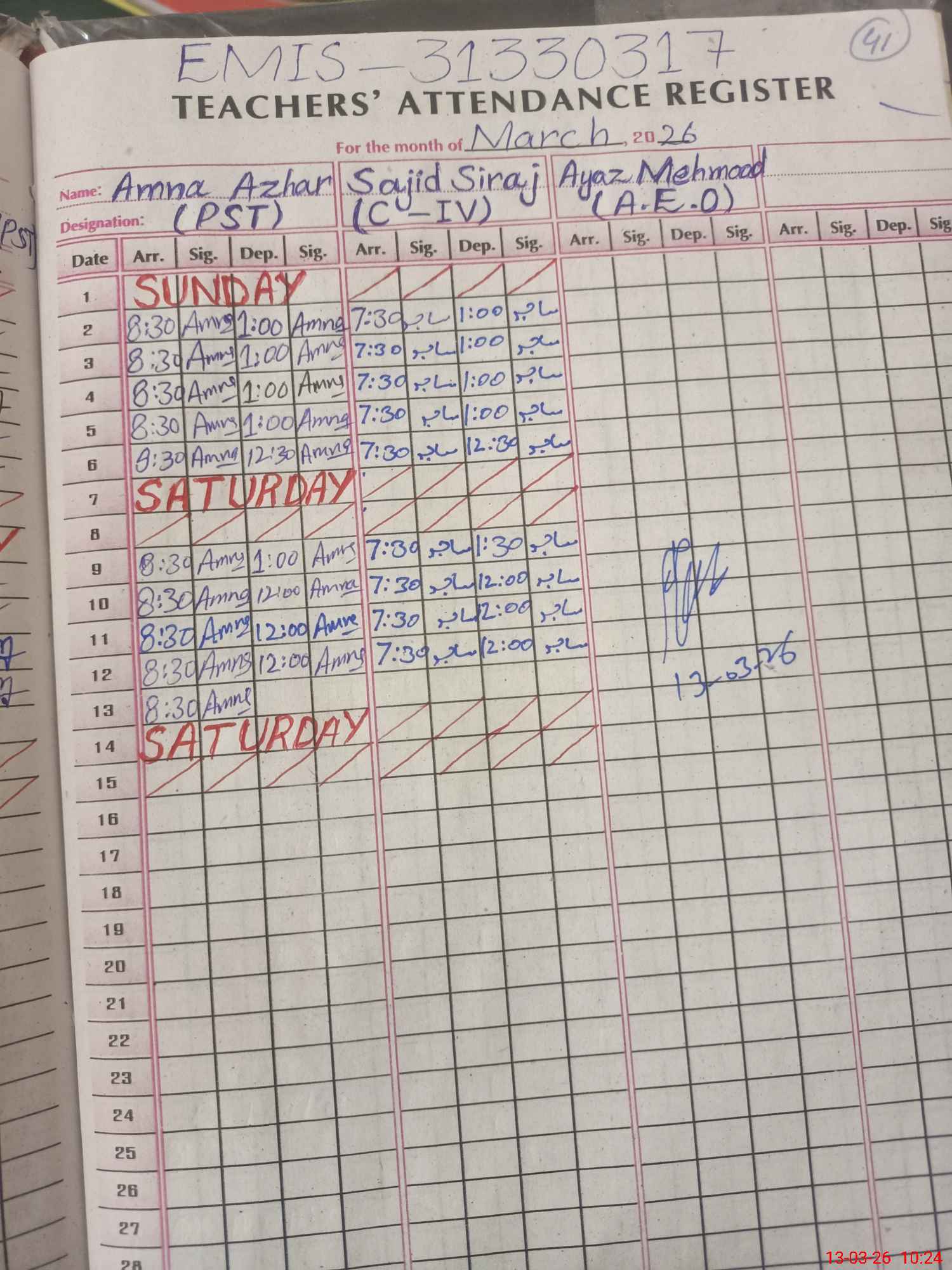 | Monitoring Date: 13-03-2026 | Start Time: 13-03-2026 10:07 AM | End Time: 13-03-2026 10:30 AM | Name of MEA: Ay**** Ma**** | |