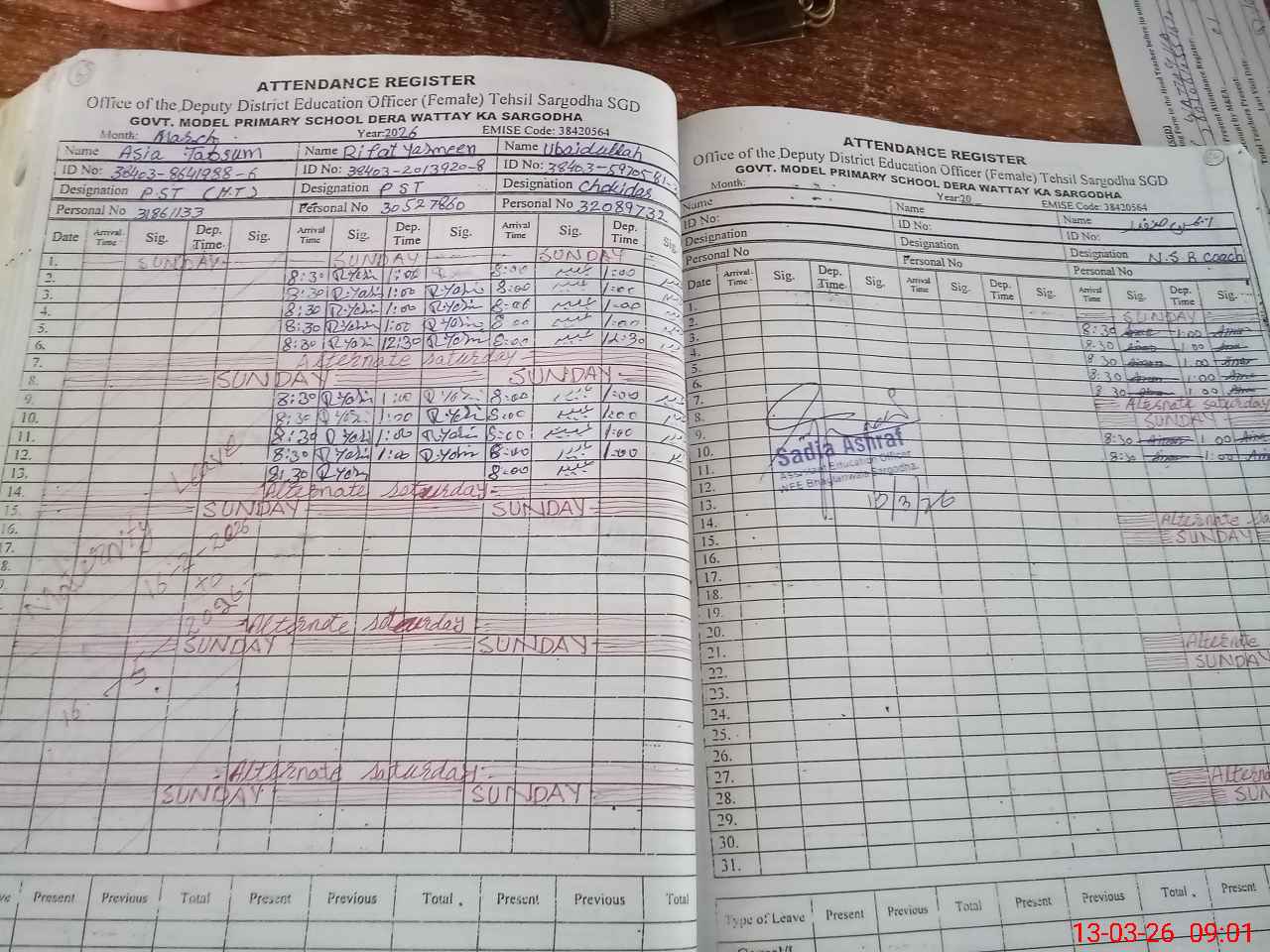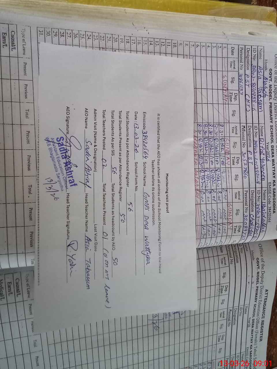 | Name: AS**** TA**** Designation: (School Headmaster's/Headmistress's) PST Phone/Cell Number: 03**** |