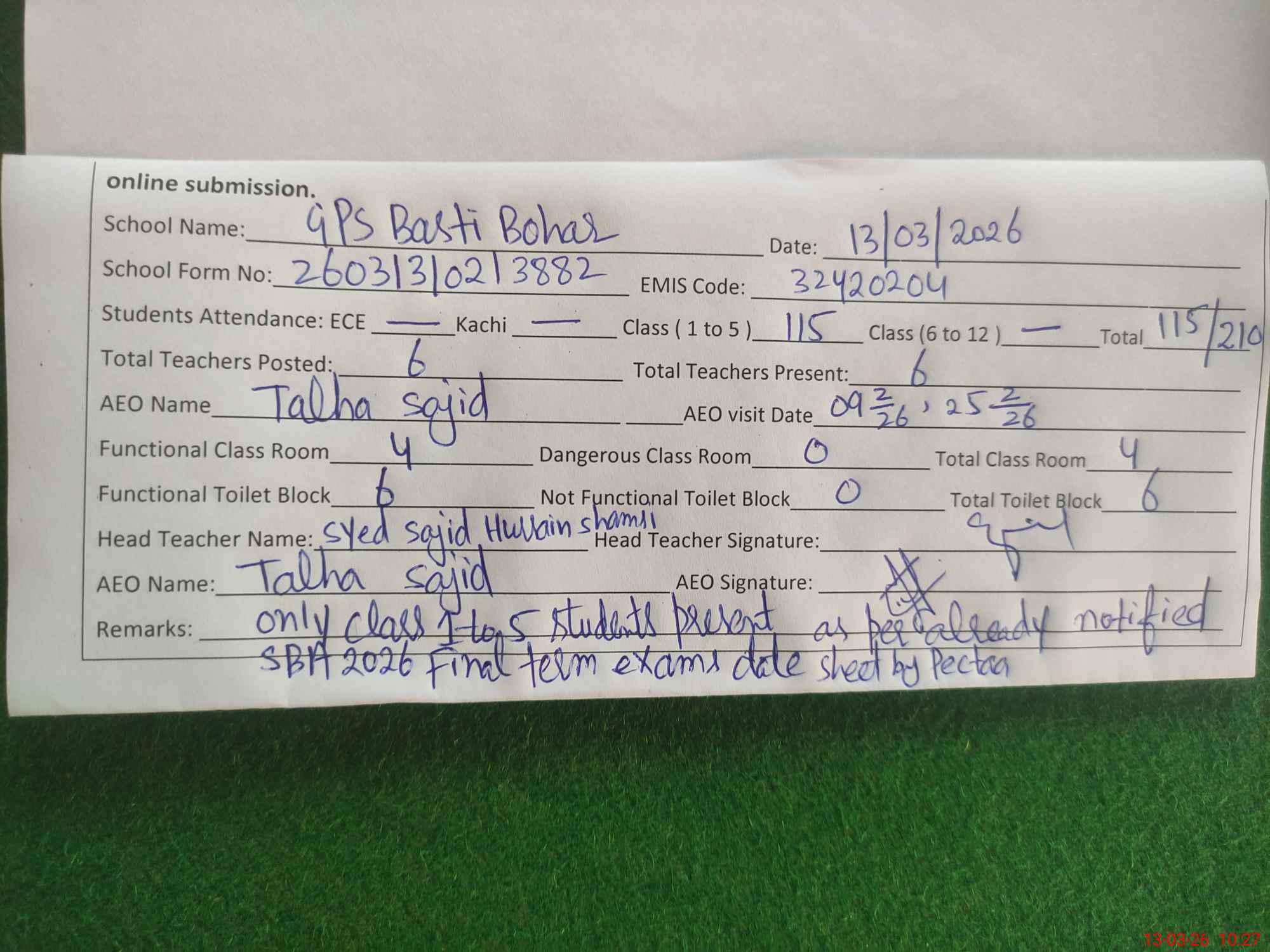 | EMIS Code: 32420204 | Name of School: GPS BASTI BOHAR | |||