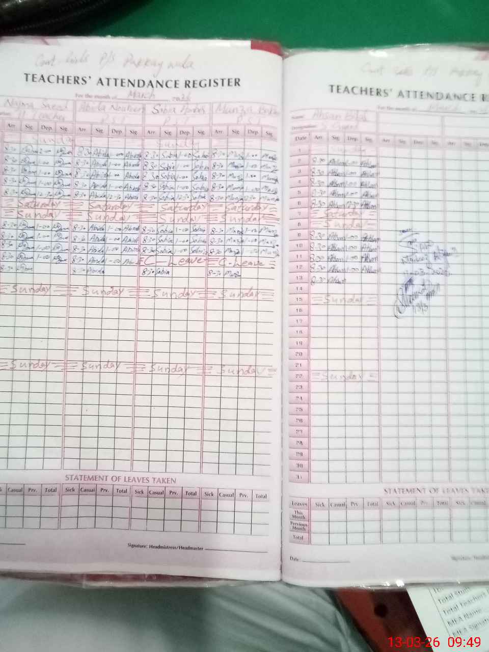 | Remarks (Use Separate Page if Required): ECCE and Nursery classes were on leave due to non SBA examination | |||||