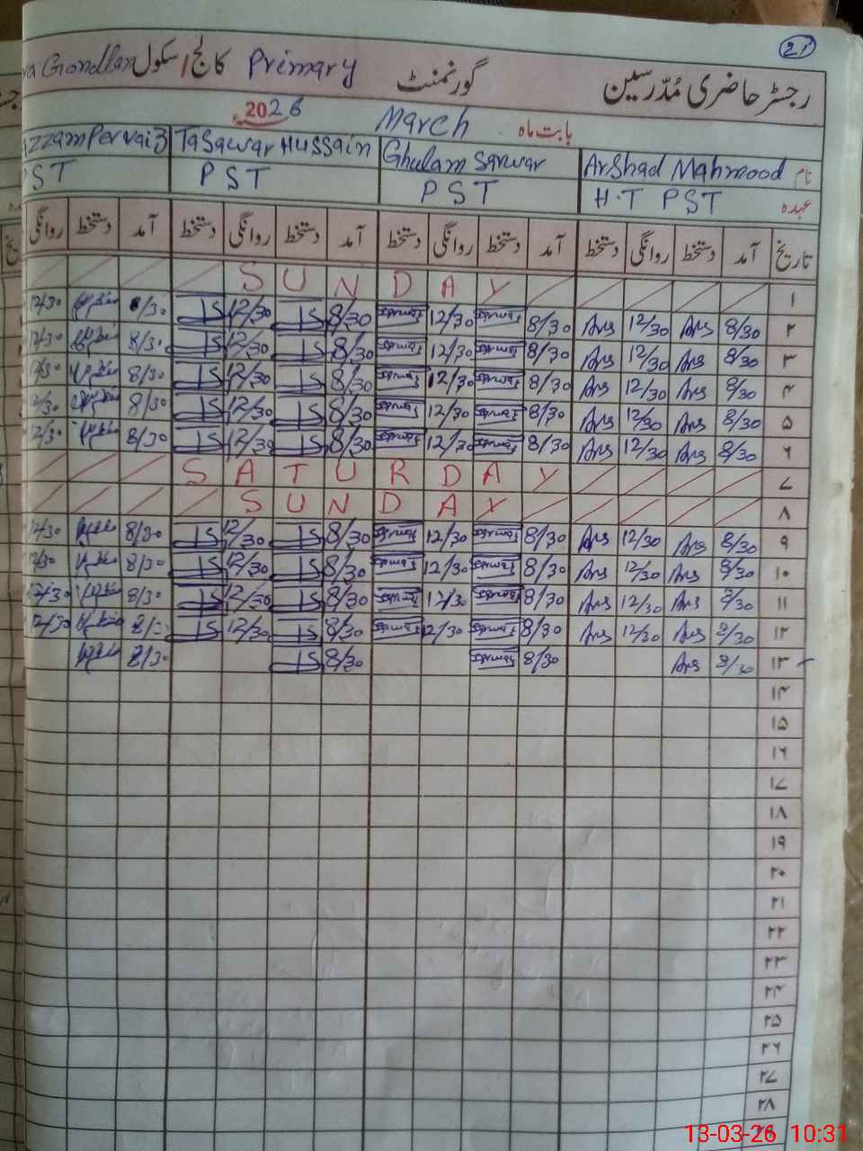 | District: SARGODHA | Tehsil: BHERA | Markaz: HAZOOR PUR - MALE | Level: Primary | |