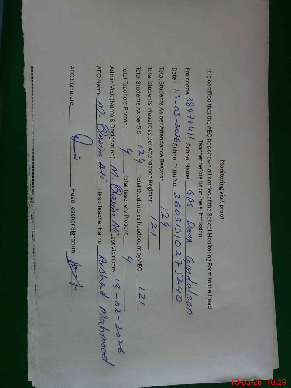 | EMIS Code: 38470411 | Name of School: GPS DERA GONDLAN | |||