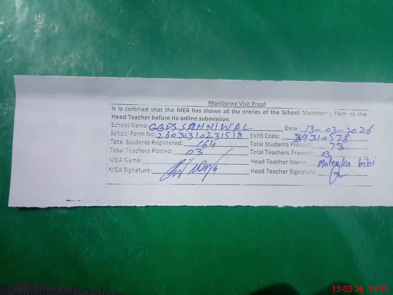 | EMIS Code: 39310578 | Name of School: GGPS SAHNI WAL | |||