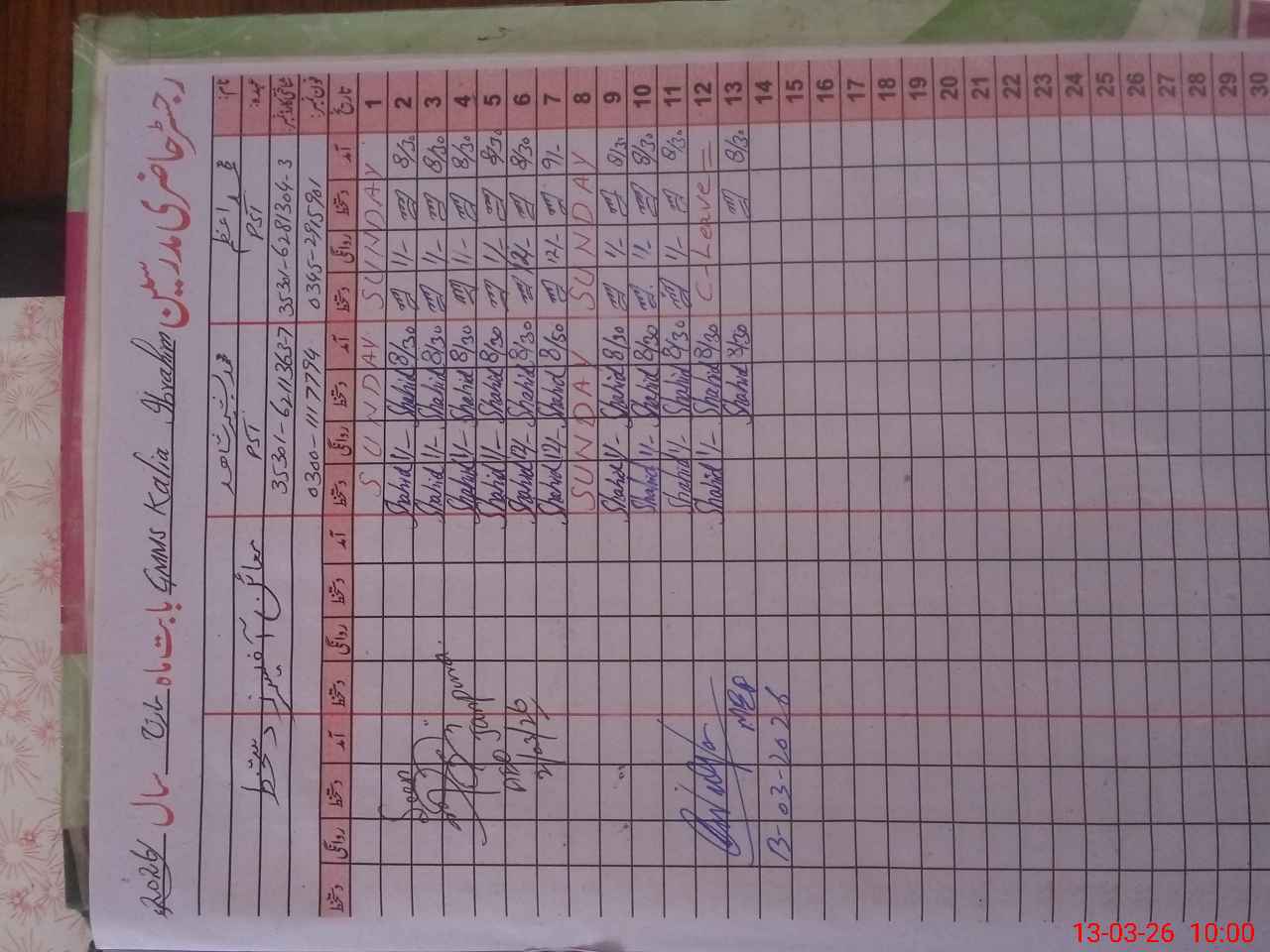 | Name: Mu**** Az**** Designation: (School Headmaster's/Headmistress's) PTC/JV Phone/Cell Number: 03**** |