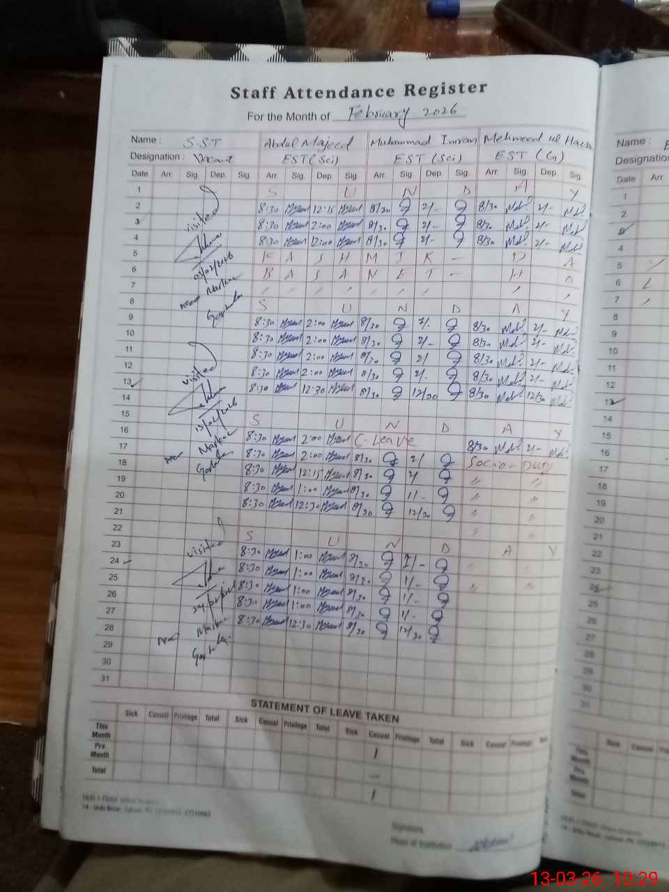 | Name: Ab**** Ma**** Designation: (School Headmaster's/Headmistress's) EST Sci Phone/Cell Number: 03**** |