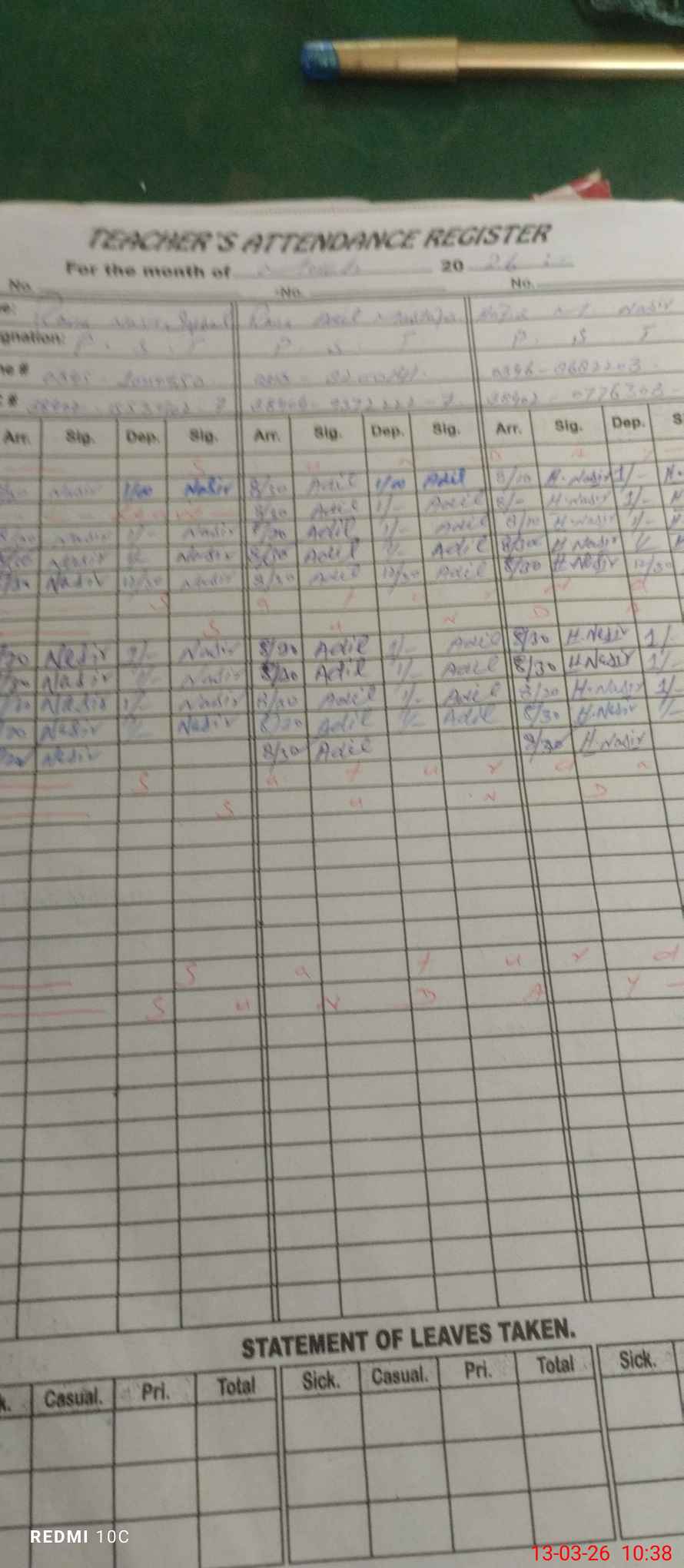 | Name: NA**** IQ**** Designation: (School Headmaster's/Headmistress's) PST Phone/Cell Number: 03**** |