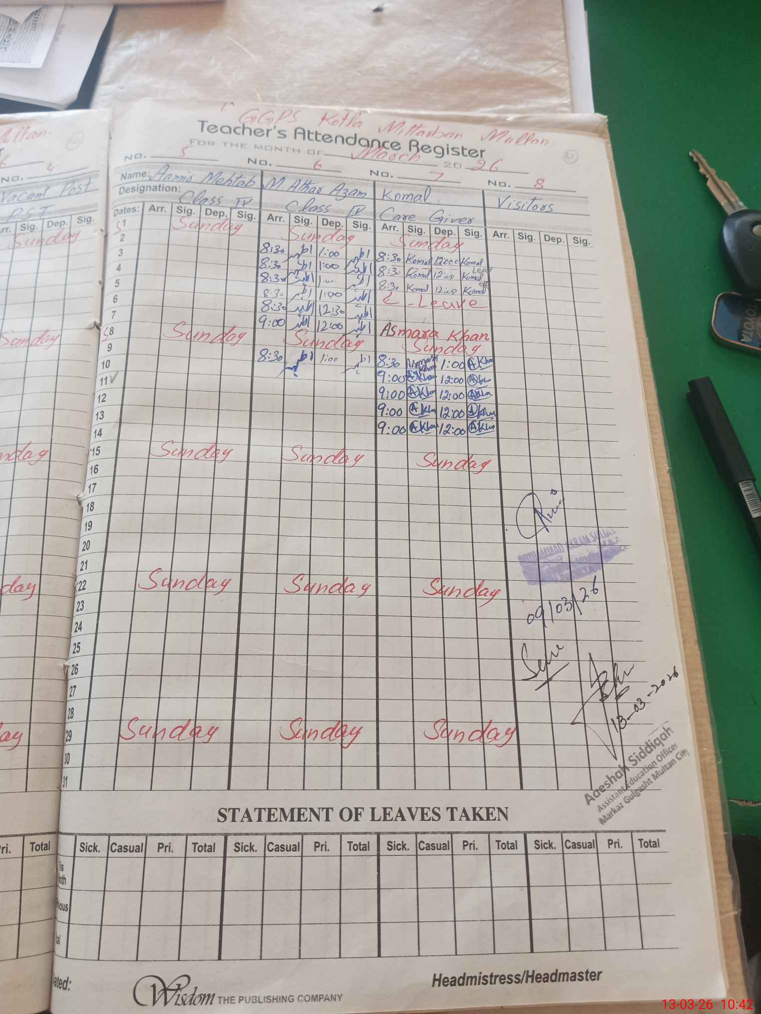 | Attendance Register | Head Teacher | MEA with School | Visit Proof |