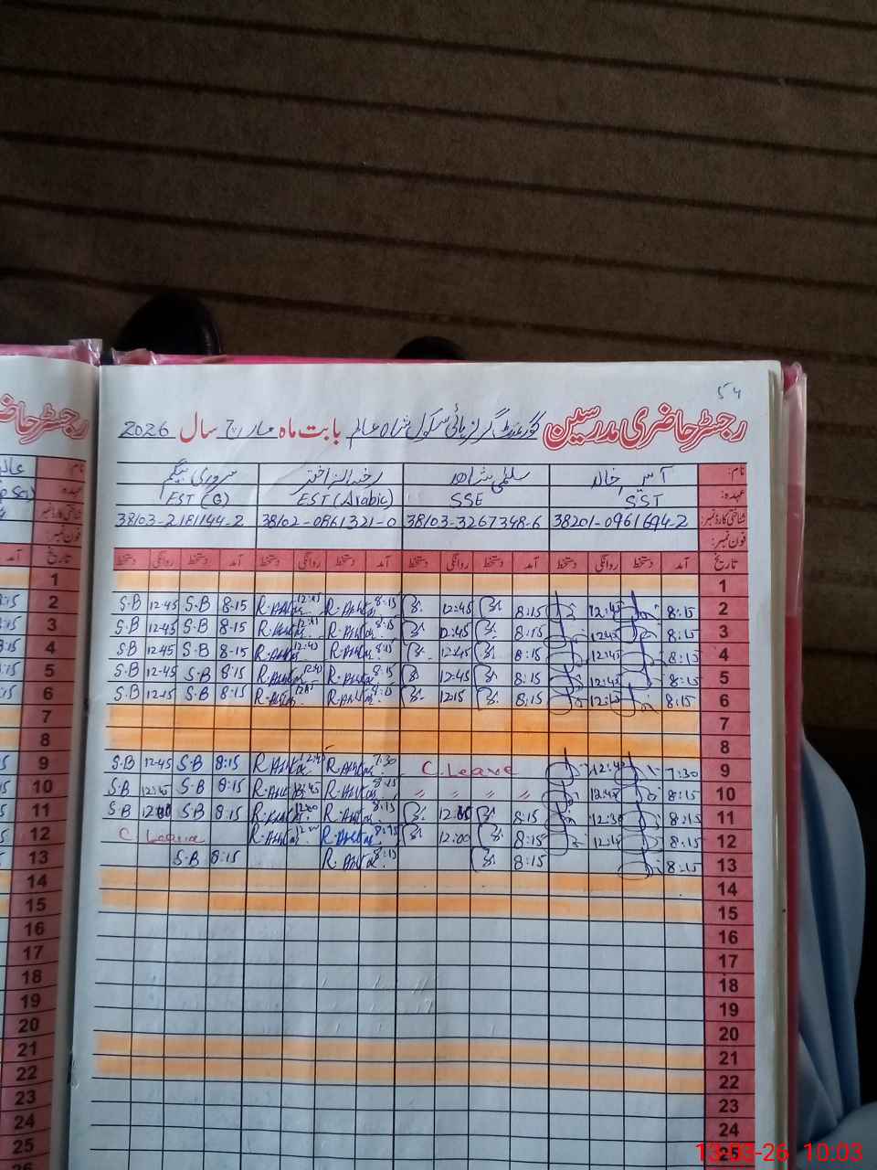 | Name: AS**** KH**** Designation: (School Headmaster's/Headmistress's) S.S.T.(Arts) Phone/Cell Number: 03**** |