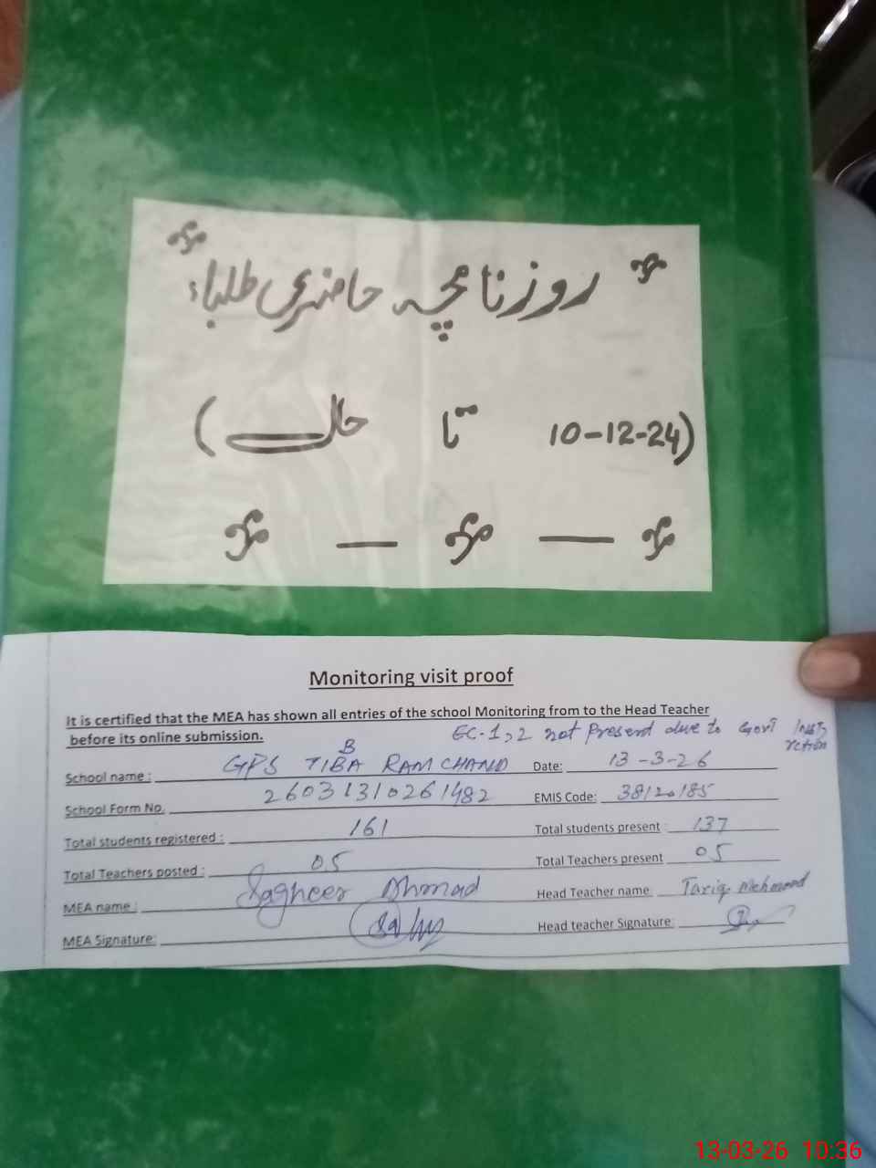 | EMIS Code: 38120185 | Name of School: GPS TIBBA RAMCHAND | |||