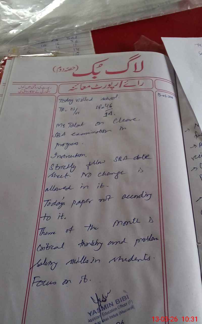 | District: MIANWALI | Tehsil: MIANWALI | Markaz: MARI INDUS-FEMALE | Level: Primary | |