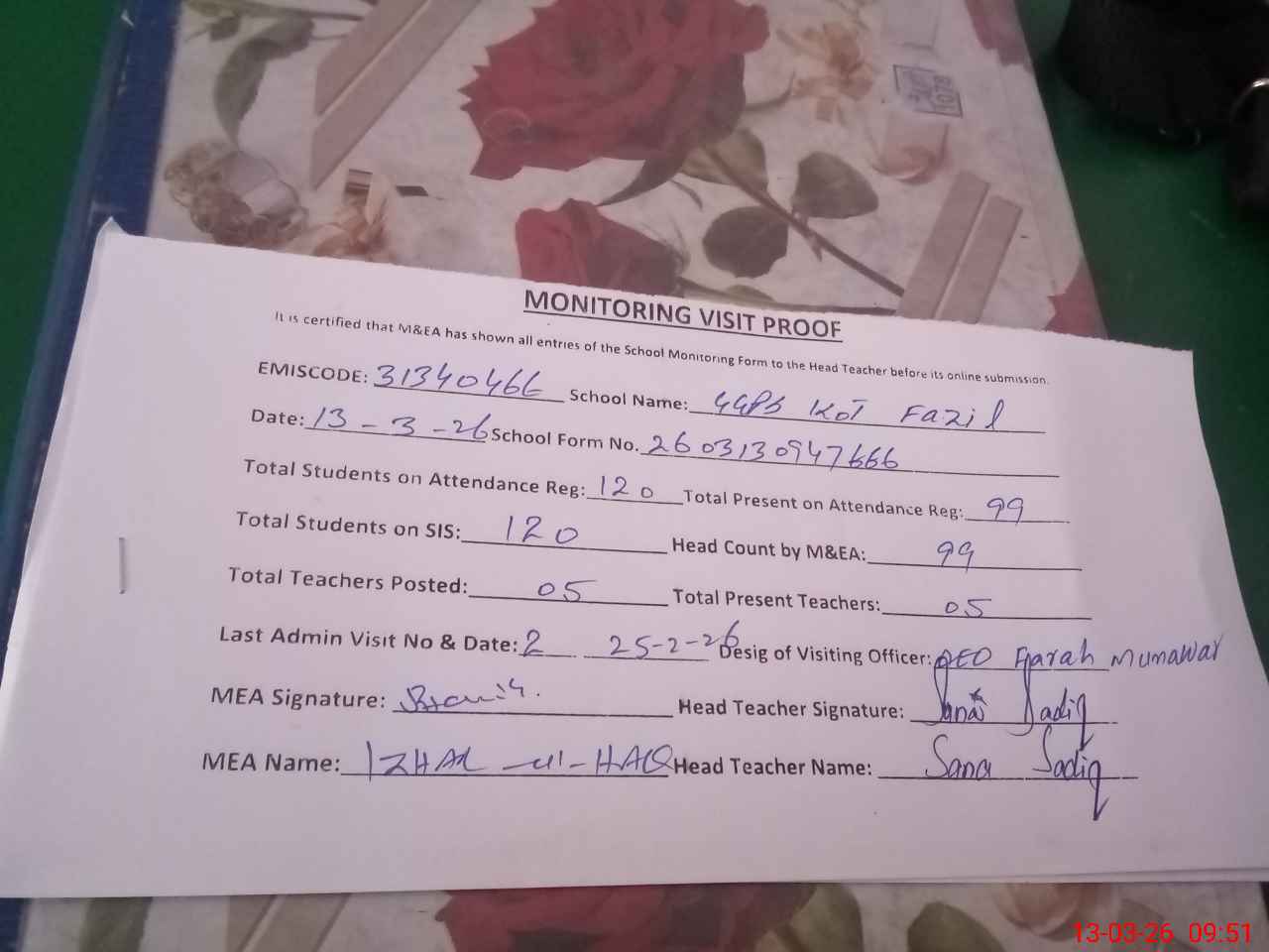| EMIS Code: 31340466 | Name of School: GGPS KOT FAZIL | |||