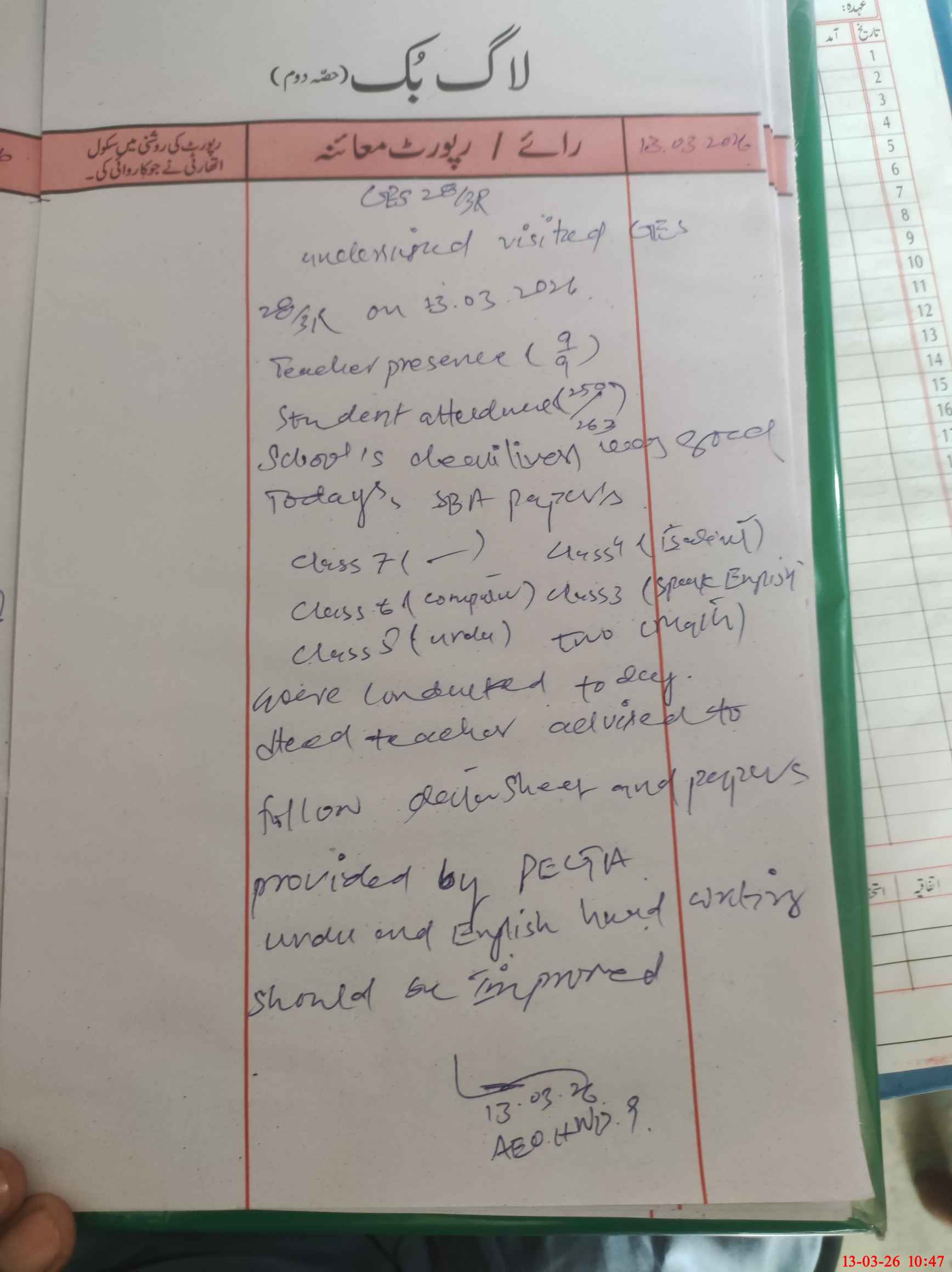 | Attendance Register | Head Teacher | MEA with School | Visit Proof |