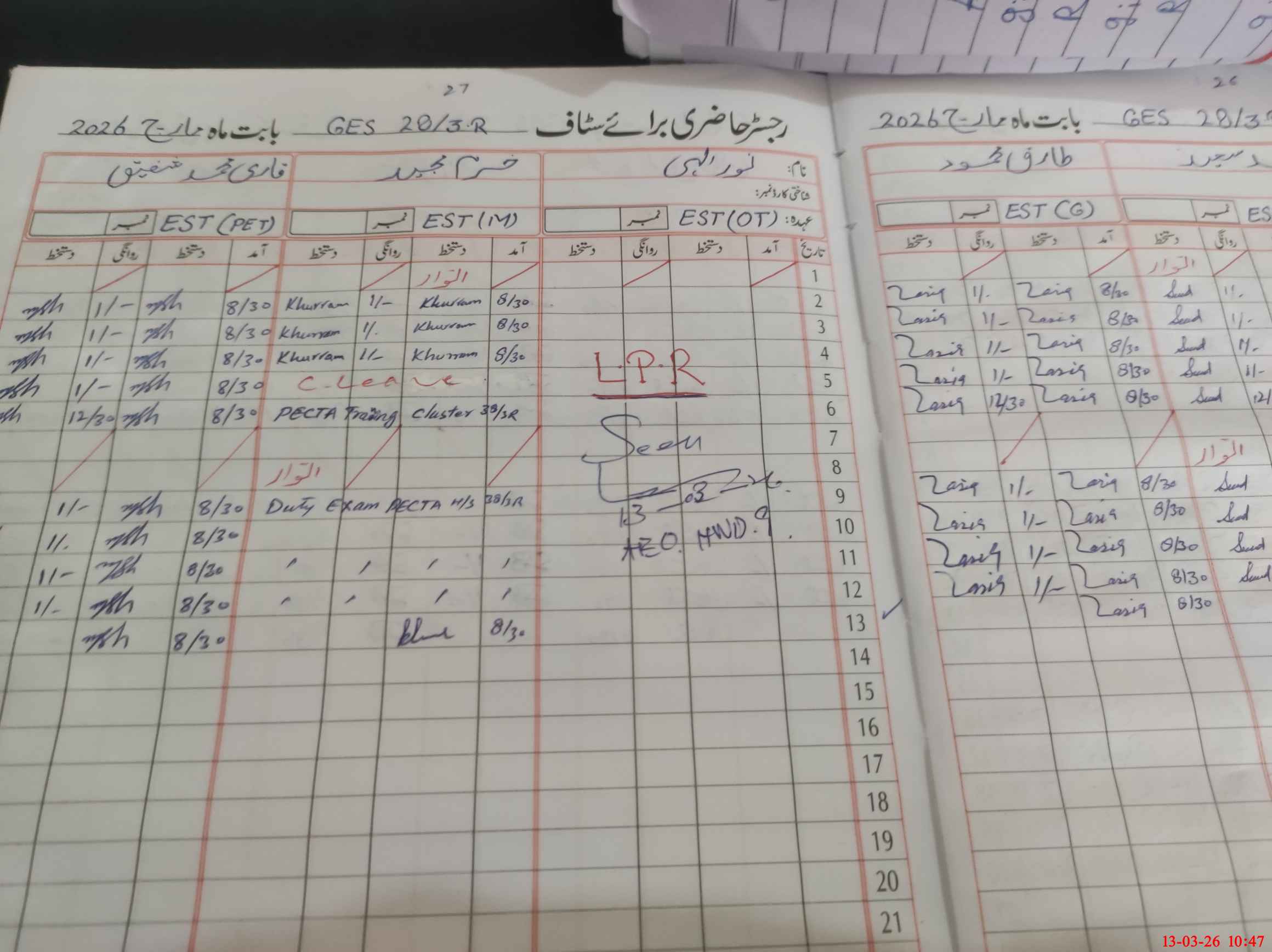 | Leave | Duty | Absent | Maternity | Medical | Ex- Pak |