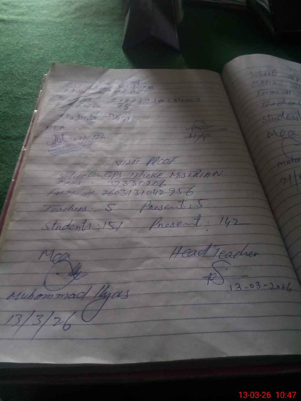 | EMIS Code: 37330206 | Name of School: GPS DHOK MISTRIAN | |||