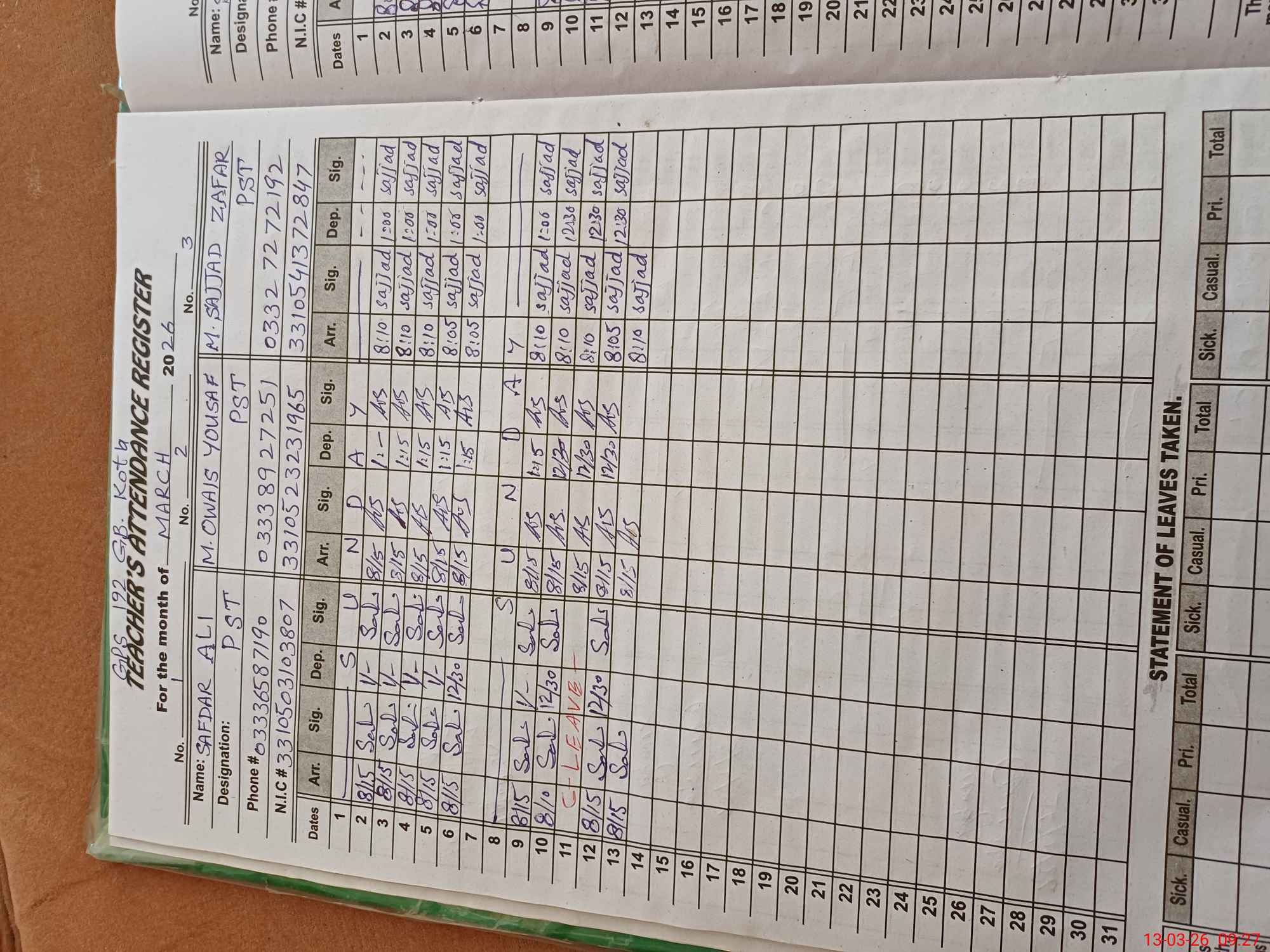 | EMIS Code: 33130116 | Name of School: GPS 192 GB KOTLA | |||