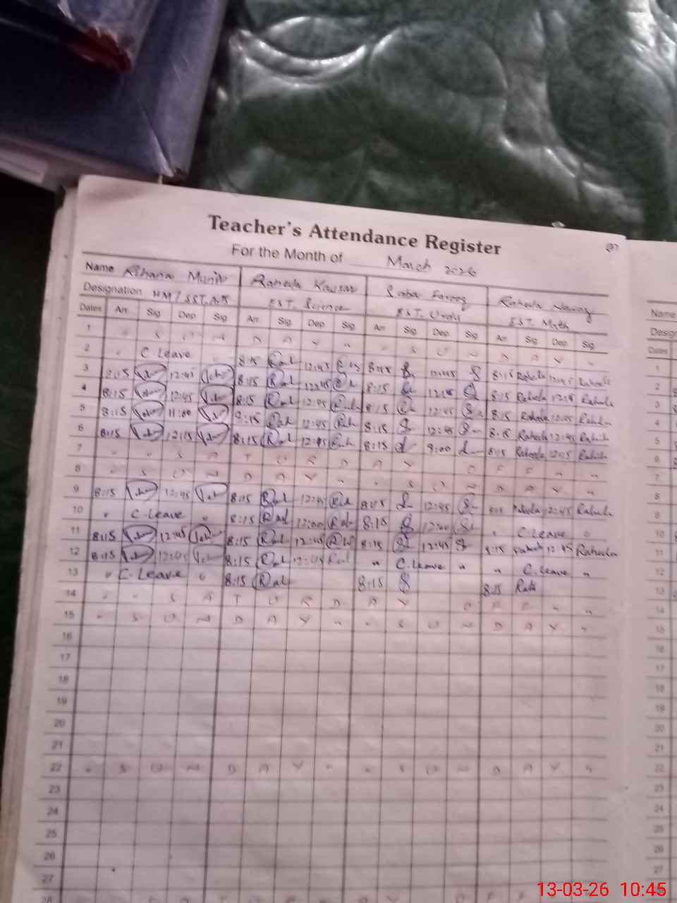 | 37**** | Su**** Ma**** | PST Science/Maths | Regular | 0 | 0 | 0 | 0 | 0 | 0 | 0 | 0 | 0 | Casual |