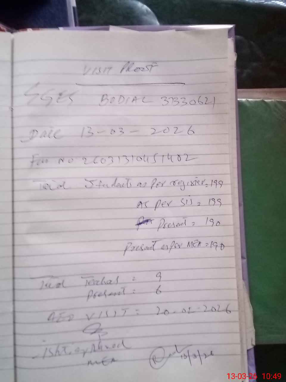 | Attendance Register | Head Teacher | MEA with School | Visit Proof |