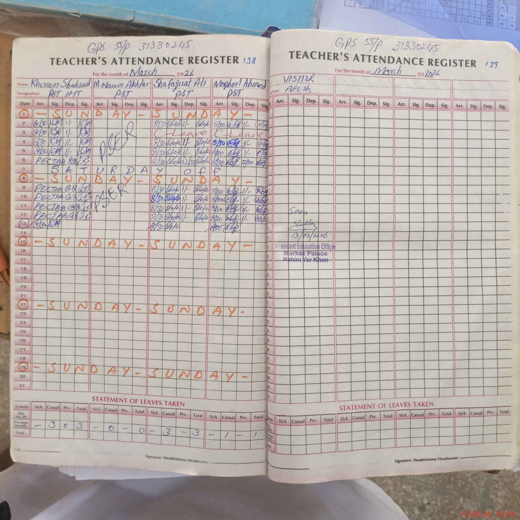 | District: RAHIMYAR KHAN | Tehsil: RAHIMYAR KHAN | Markaz: PALACE - MALE | Level: Primary | |
