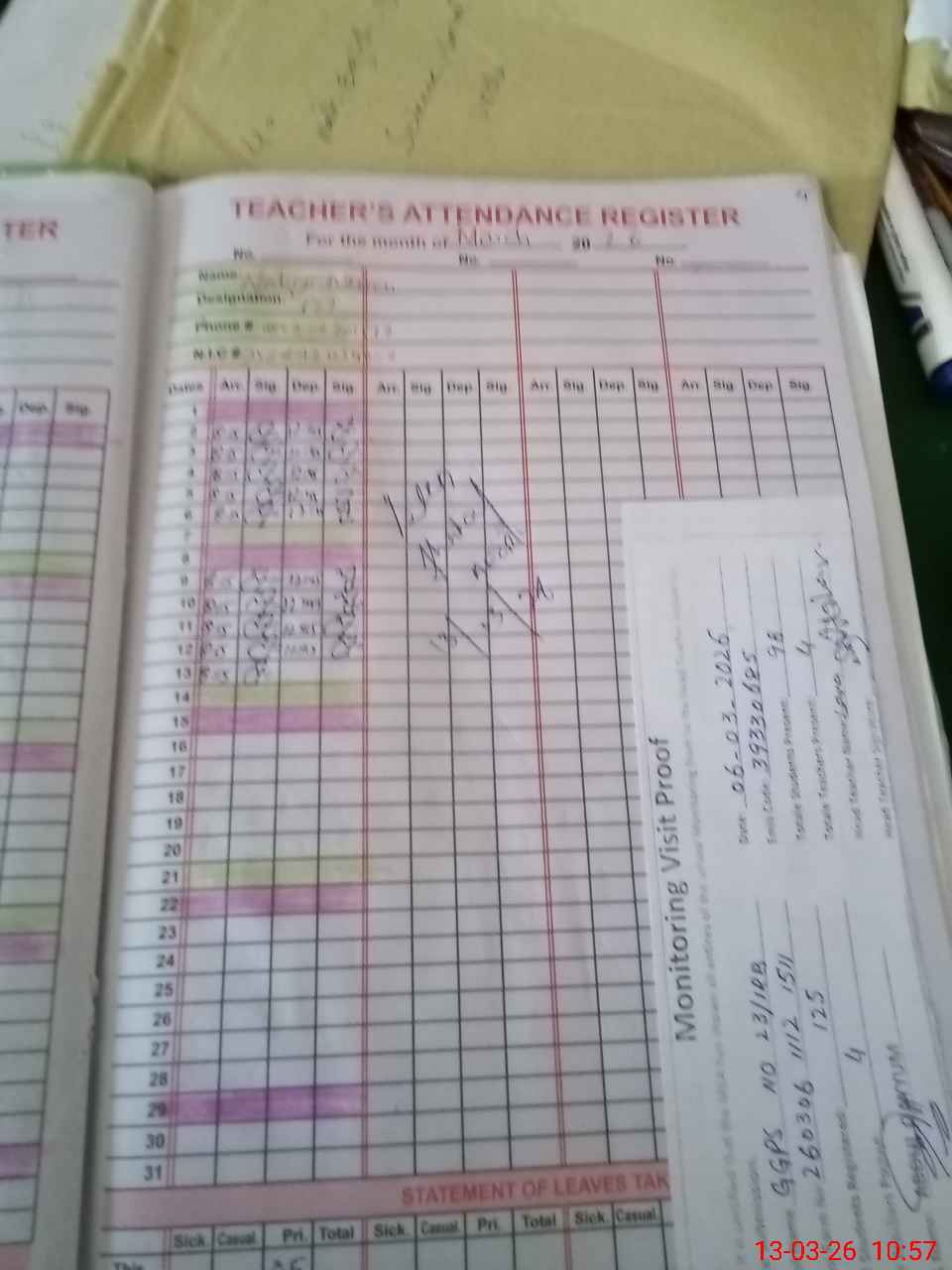 | Attendance Register | Head Teacher | MEA with School | Visit Proof |