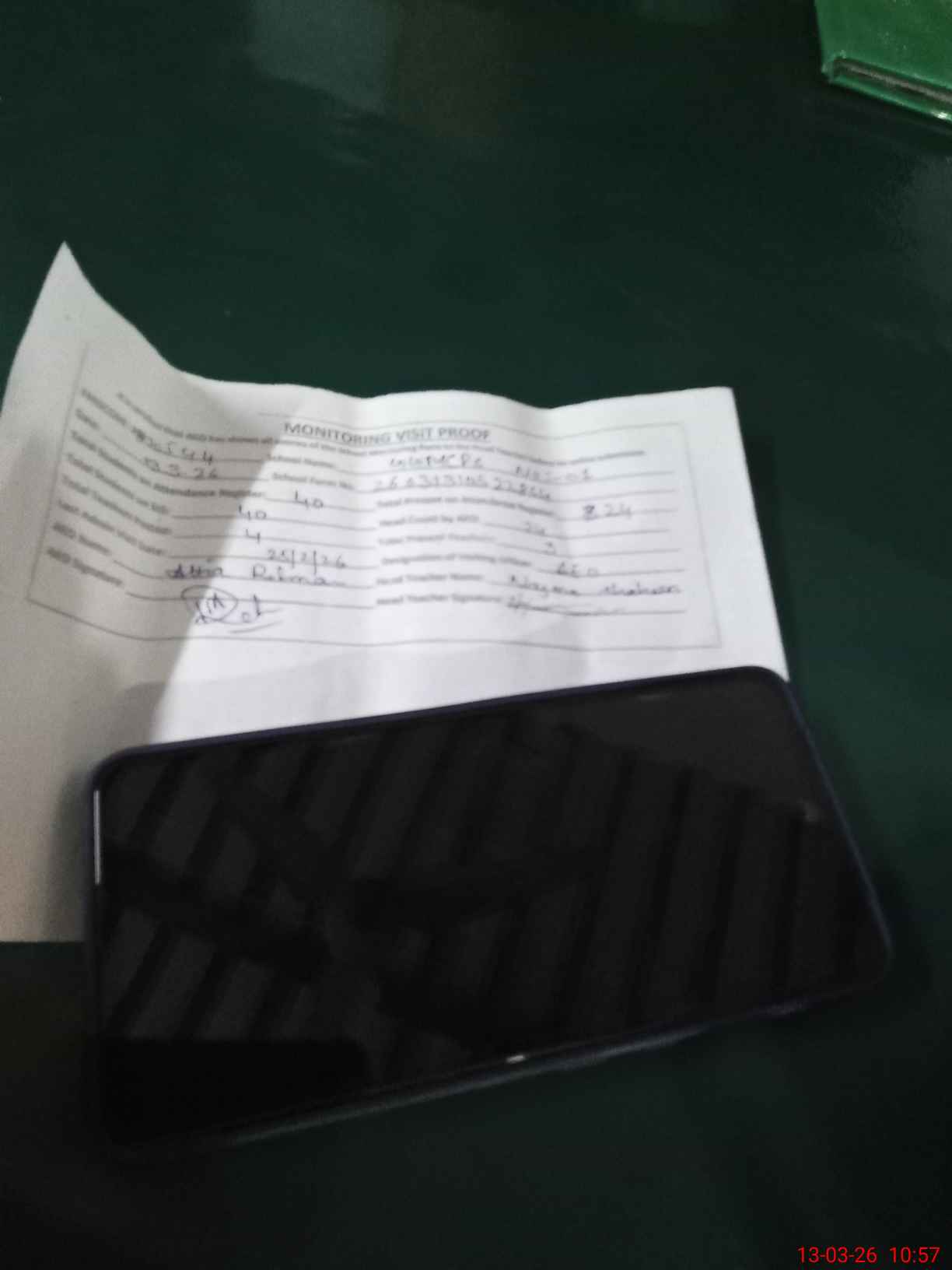 | Attendance Register | Head Teacher | MEA with School | Visit Proof |