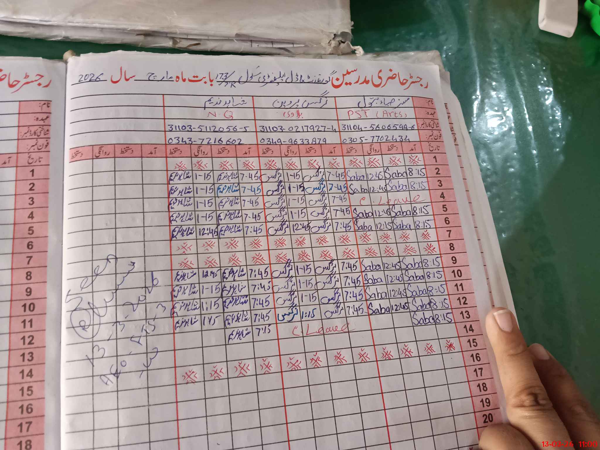 | CNIC | Full Name | Designation | R/C | Absence during last cal. month |