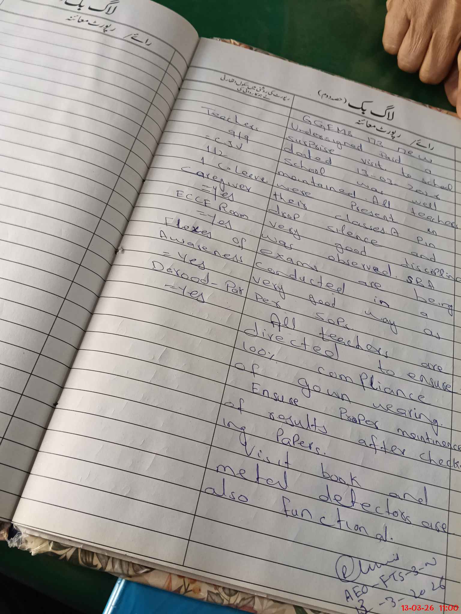 | Attendance Register | Head Teacher | MEA with School | Visit Proof |