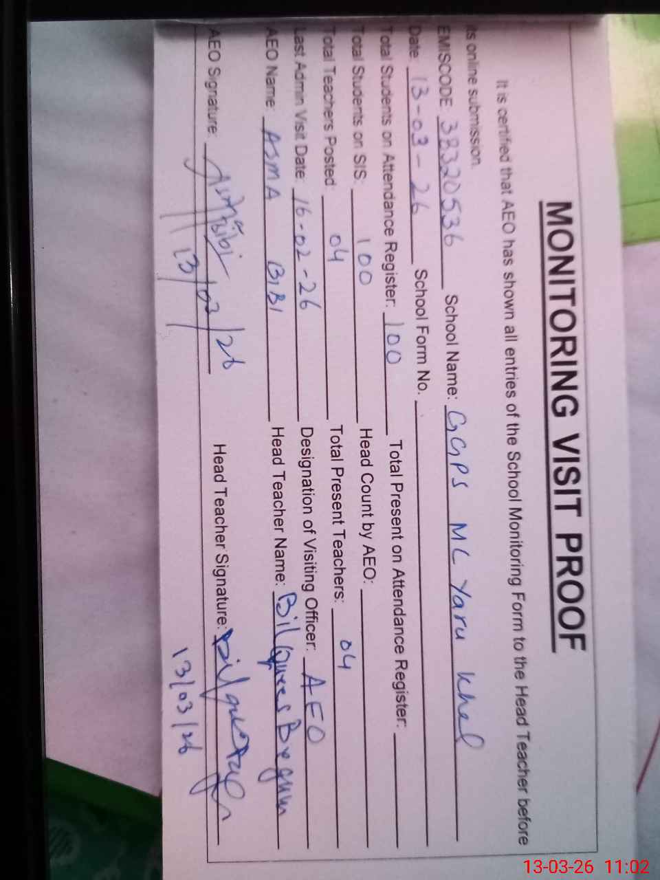 | EMIS Code: 38320536 | Name of School: GGPS MC YARU KHEL | |||