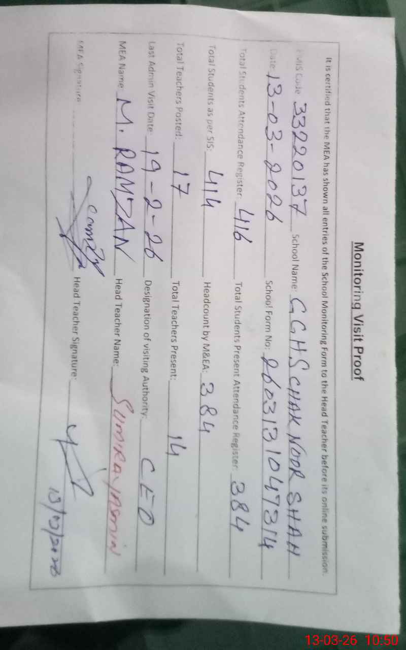 | EMIS Code: 33220137 | Name of School: GGHS CHAK NOOR SHAH | |||