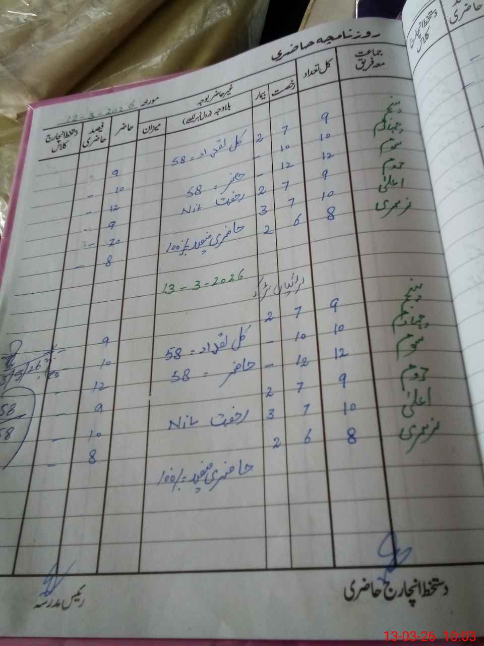 | Total Students Present | 0 | 0 | 10 | 9 | 12 | 10 | 9 | 58 | ||||||||