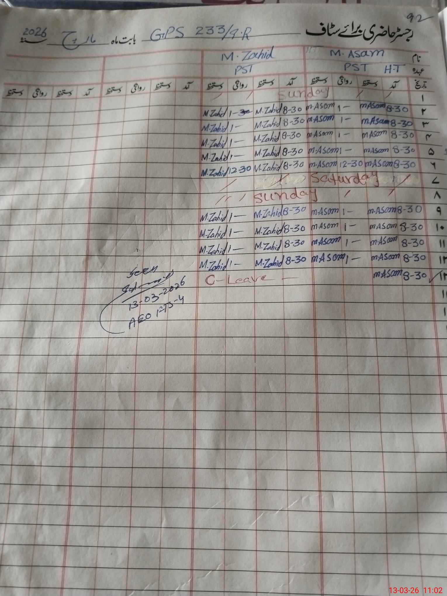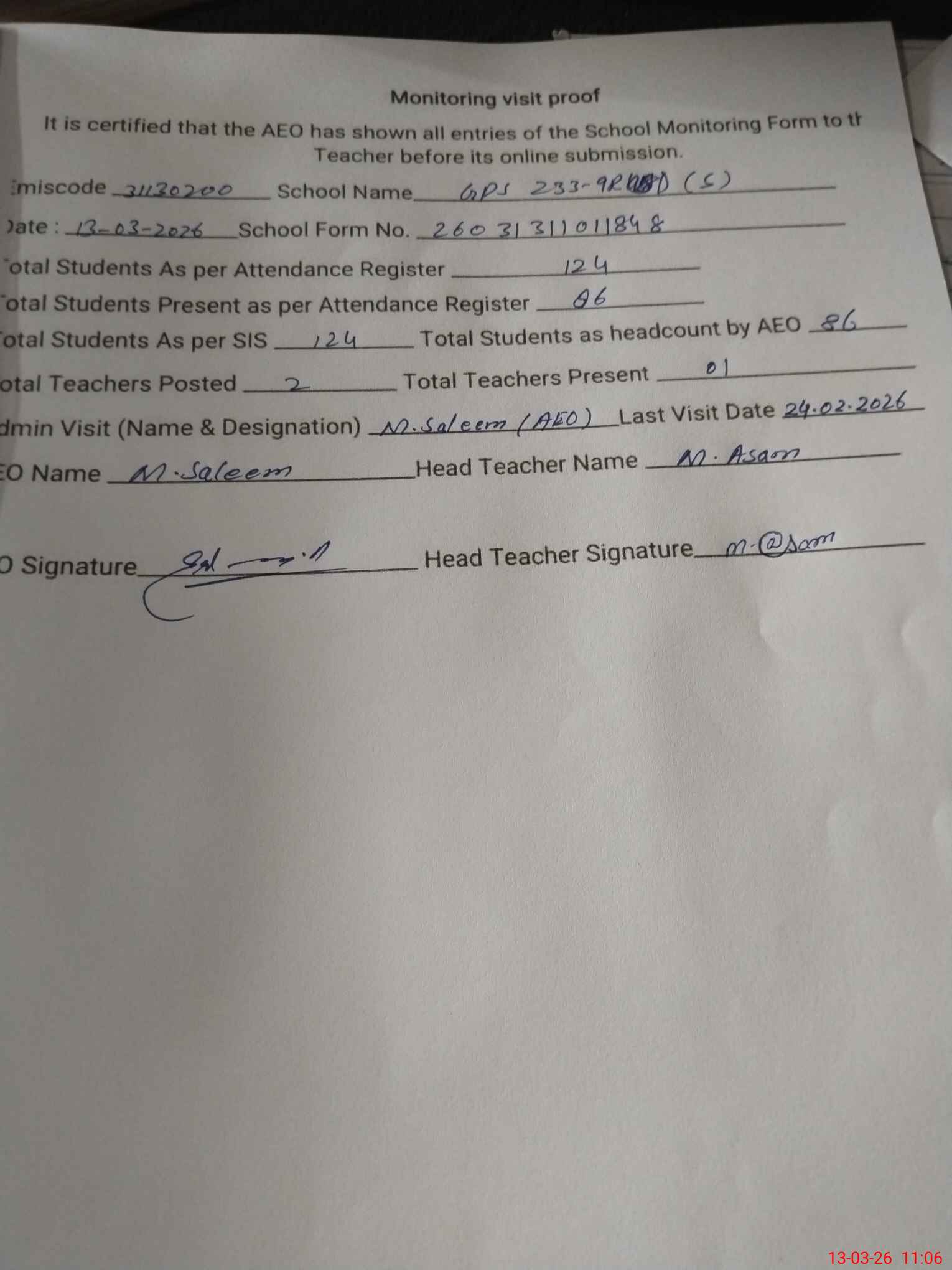 | EMIS Code: 31130200 | Name of School: GPS CHAK 233/9-R | |||