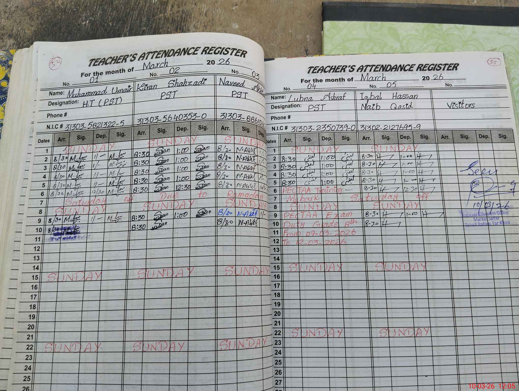 | Name: Mu**** UM**** Designation: (School Headmaster's/Headmistress's) PST/PTC/JV Phone/Cell Number: 03**** |