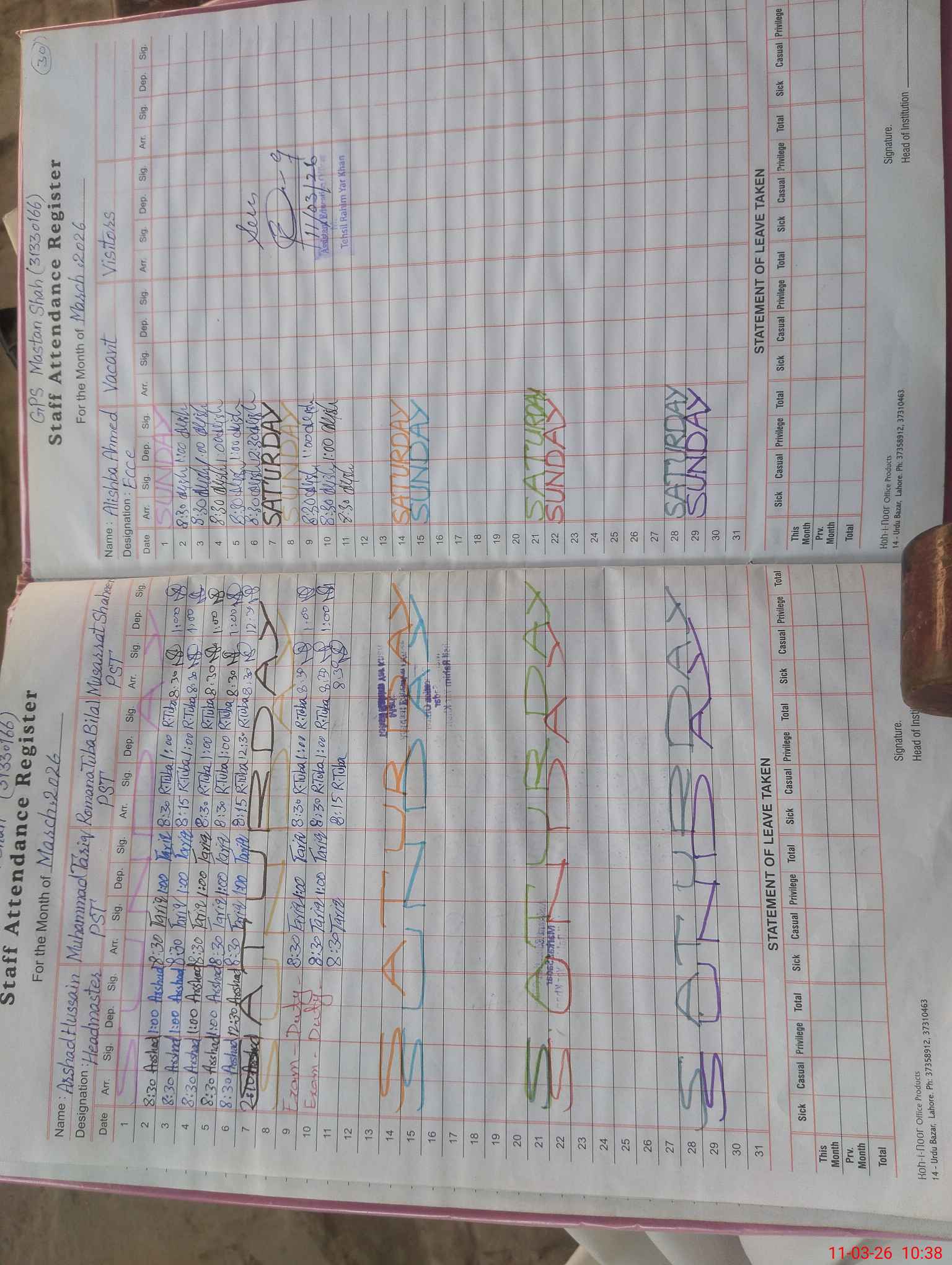 | Name: Ar**** Hu**** Designation: (School Headmaster's/Headmistress's) PST Phone/Cell Number: 03**** |