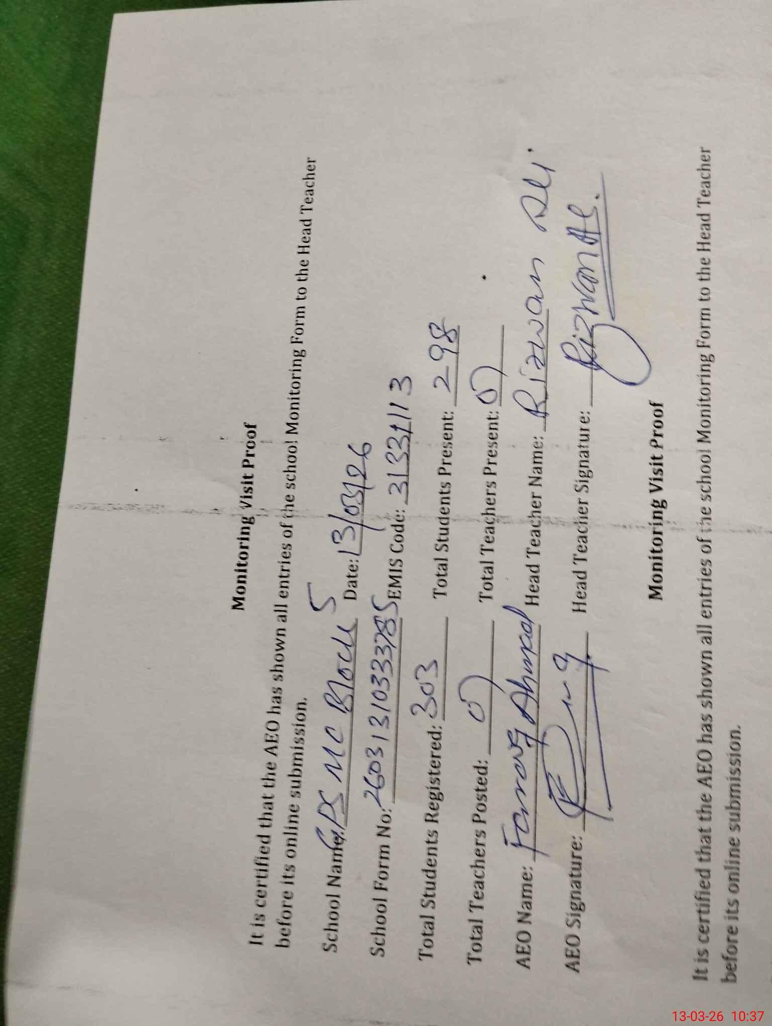 | EMIS Code: 31331113 | Name of School: GPS MC BLOCK NO. 5 INHAR COLONY | |||