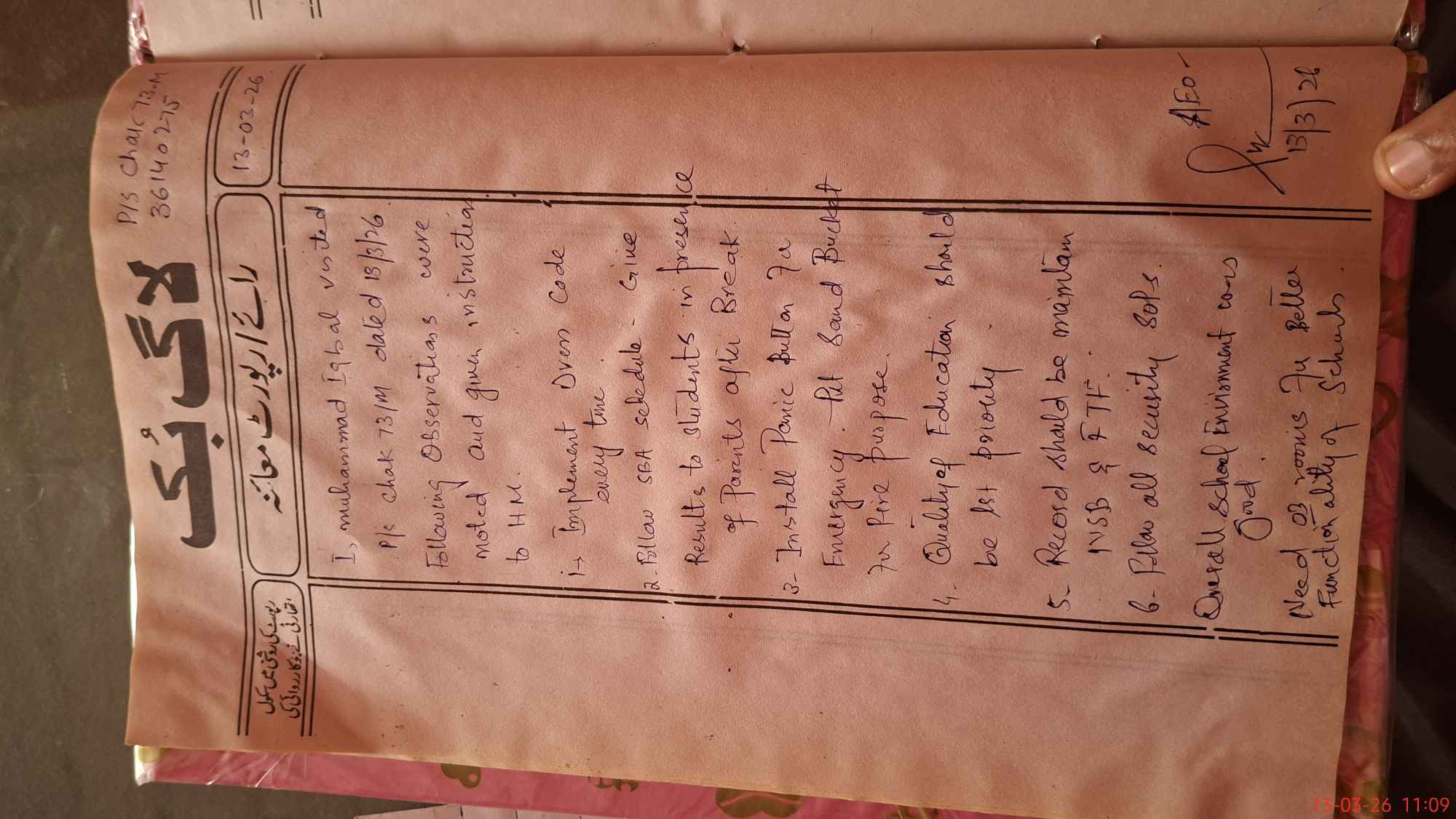 | Certified that this School was Inspected by the Undersigned MEA/DMO Today and the Information Stated Above is as Per Record. | |||||