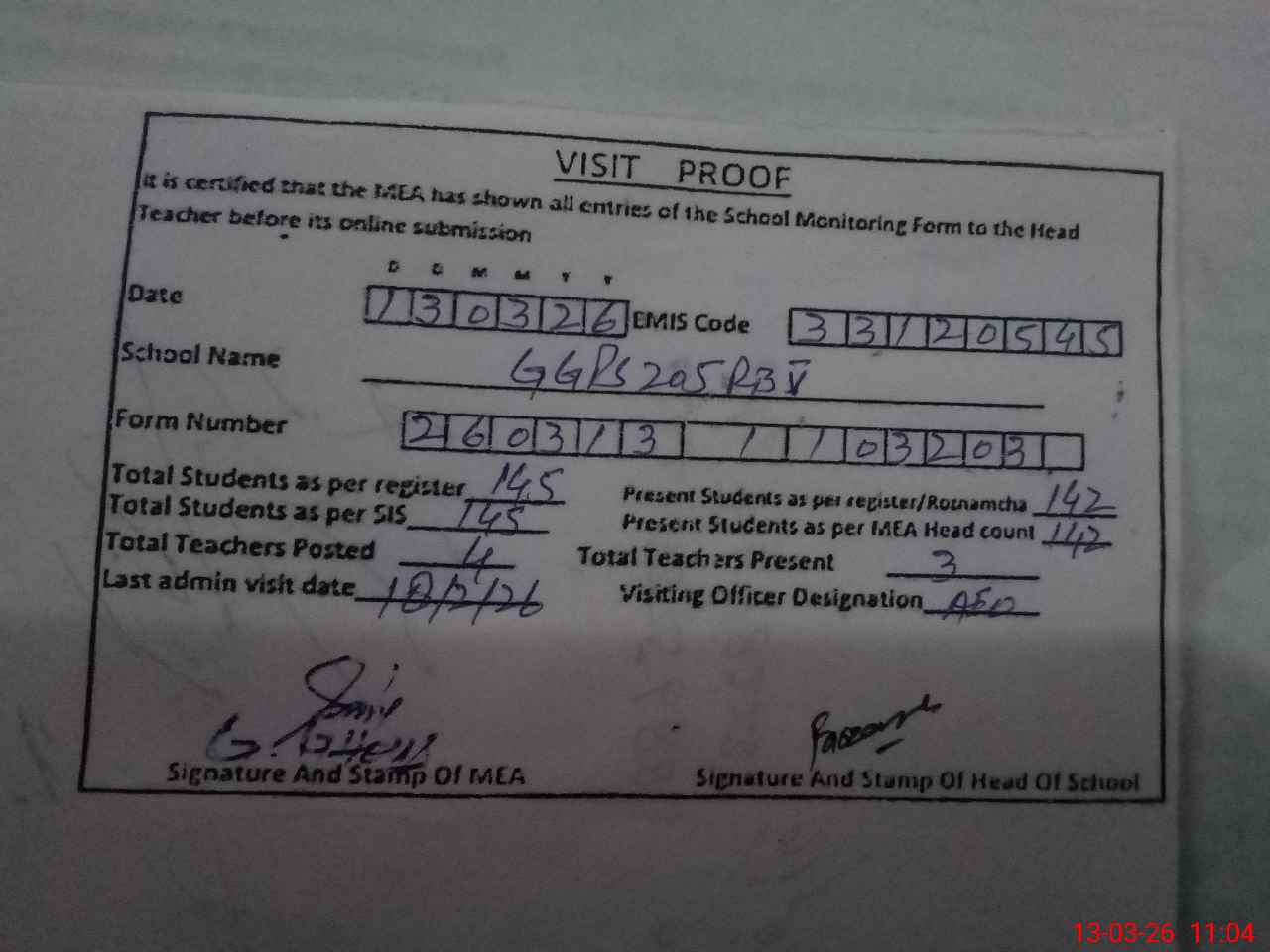 | EMIS Code: 33120545 | Name of School: GGPS CHAK 205 RB V KHURRIANWALA | |||