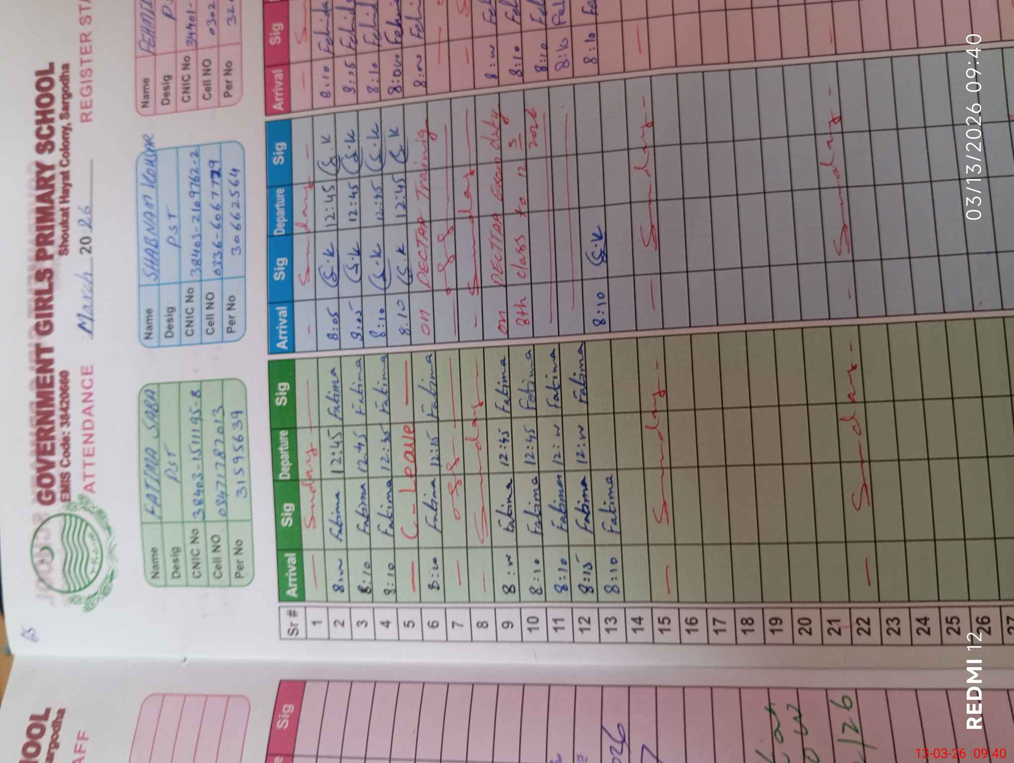 | Name: FA**** SA**** Designation: (School Headmaster's/Headmistress's) PST Phone/Cell Number: 03**** |