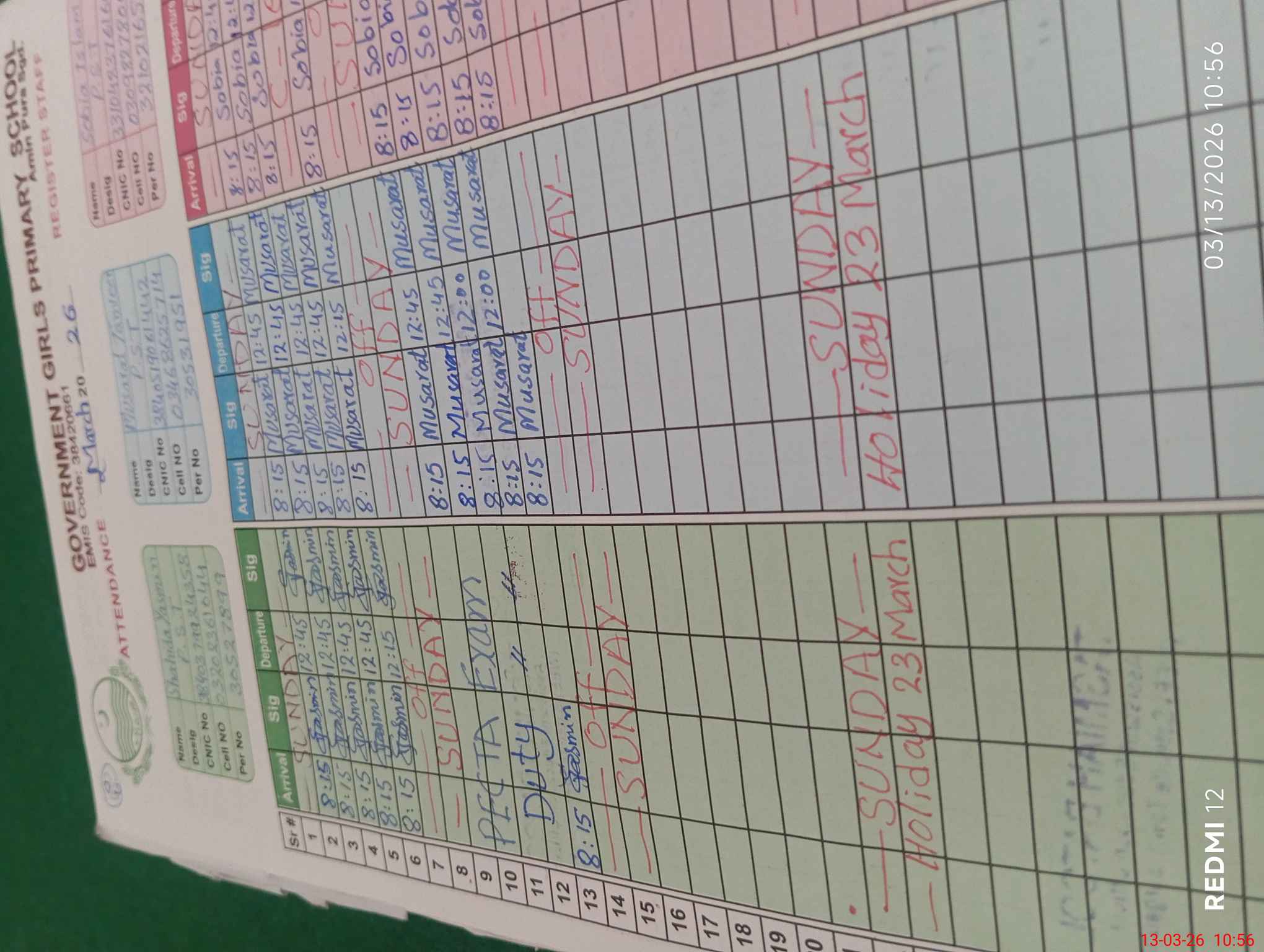 | Name: SH**** YA**** Designation: (School Headmaster's/Headmistress's) PST Phone/Cell Number: 03**** |