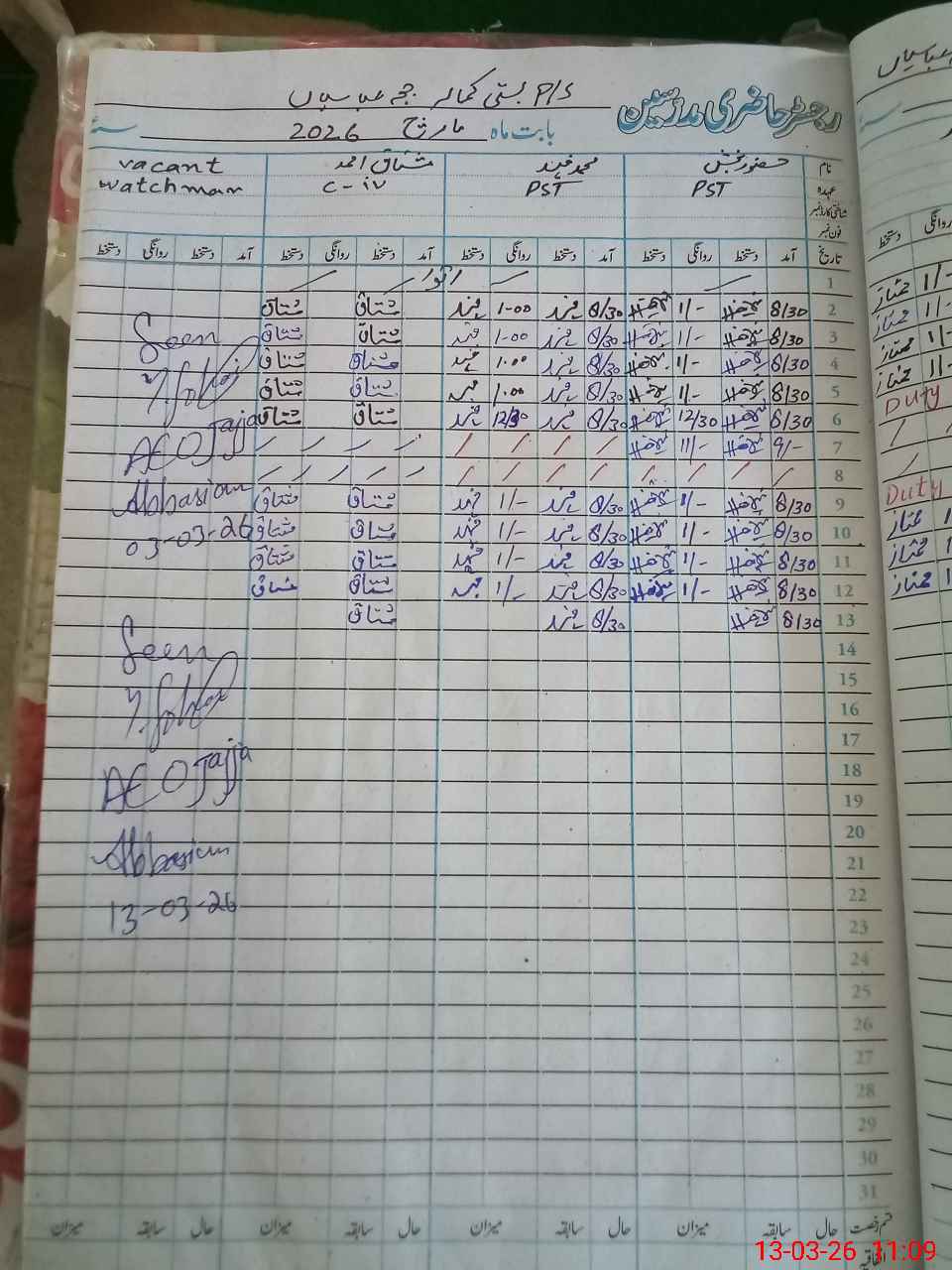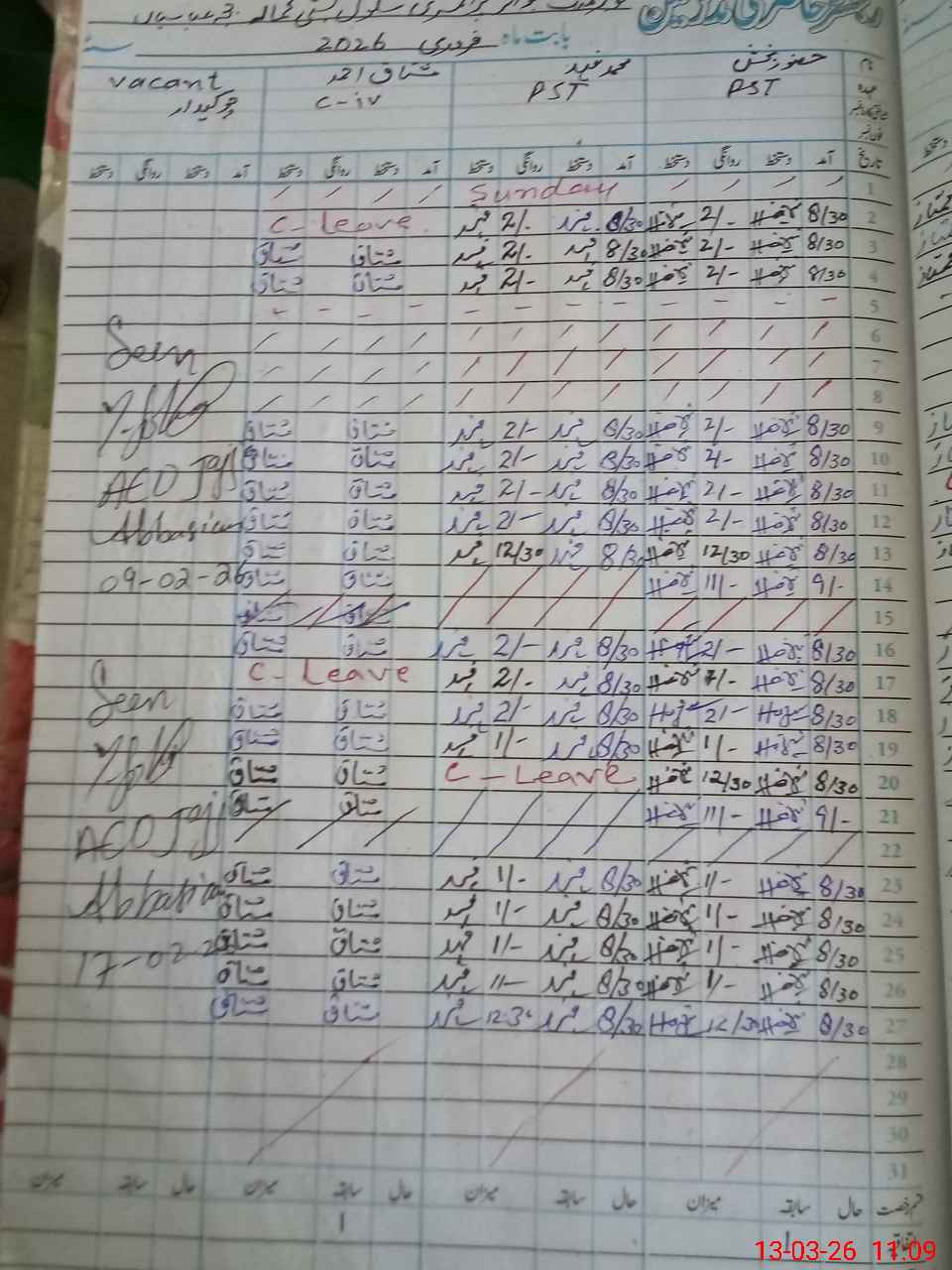 | CNIC | Full Name | Designation | R/C | Absence During Last Calender Month |