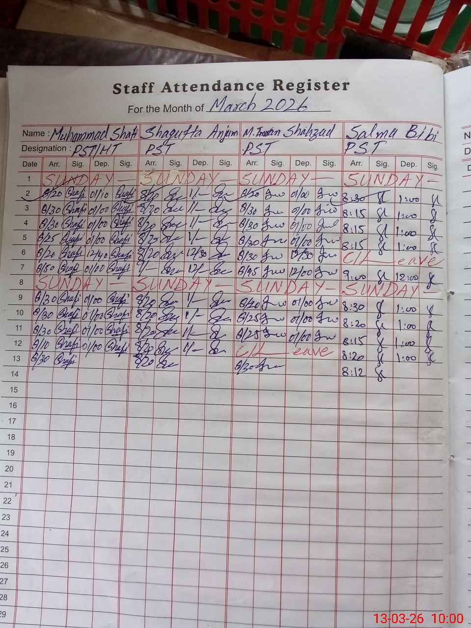 | Name: Sh**** An**** Designation: (School Headmaster's/Headmistress's) PST Phone/Cell Number: 03**** |