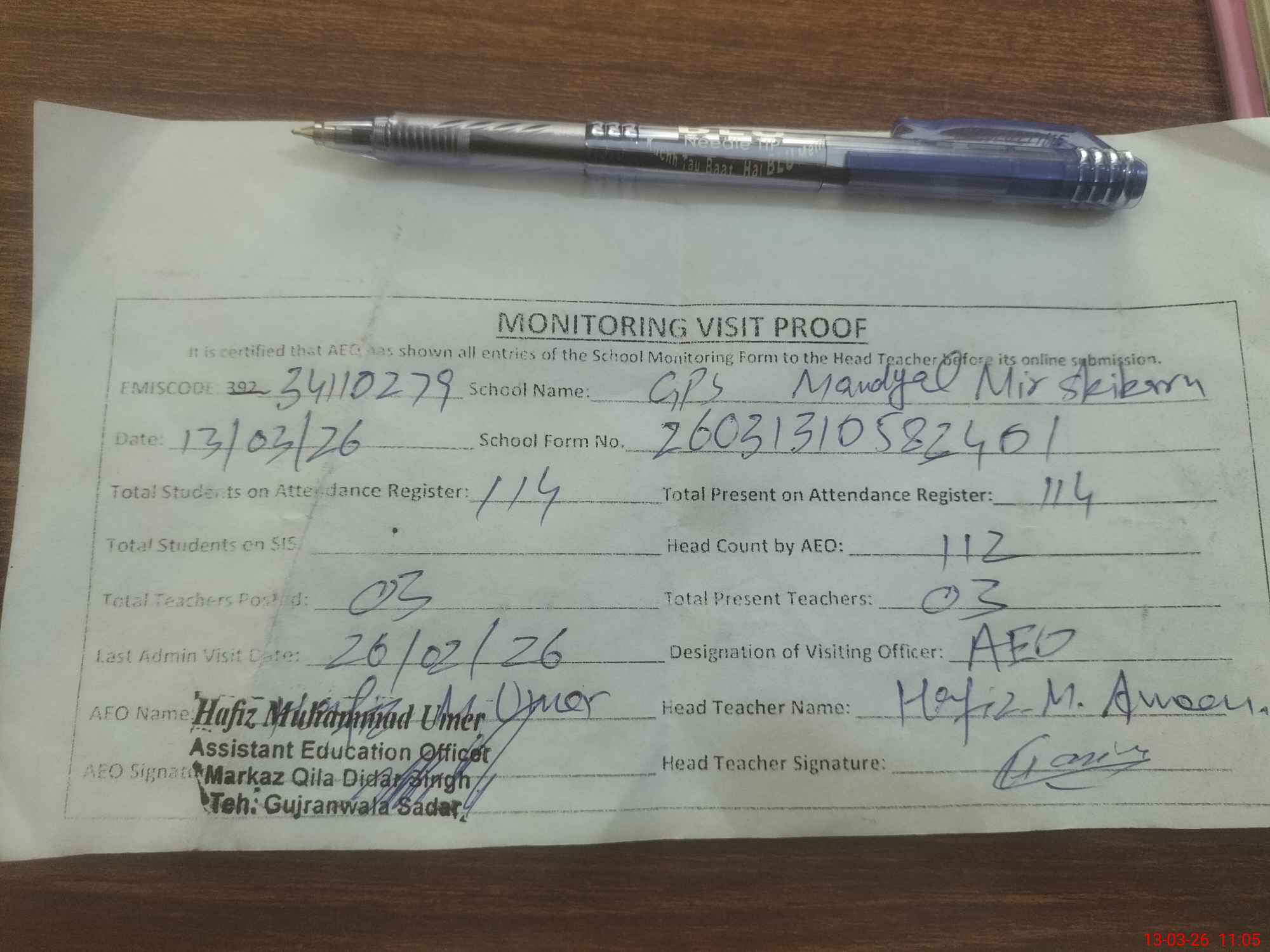 | EMIS Code: 34110279 | Name of School: GPS MANDIALA MIR SHIKARAN | |||