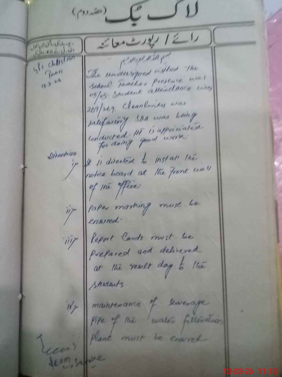| Certified that this School was Inspected by the Undersigned MEA/DMO Today and the Information Stated Above is as Per Record. | |||||
