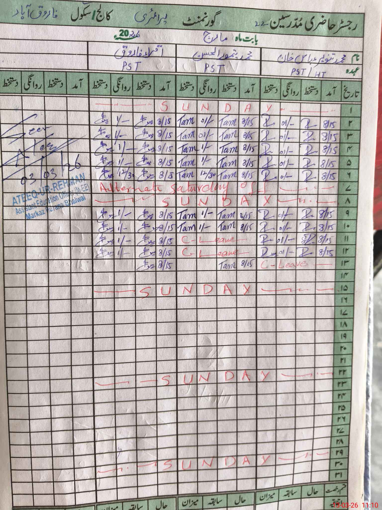 | Name: MU**** Ta**** Ab**** Kh**** Designation: (School Headmaster's/Headmistress's) PST Phone/Cell Number: 03**** |