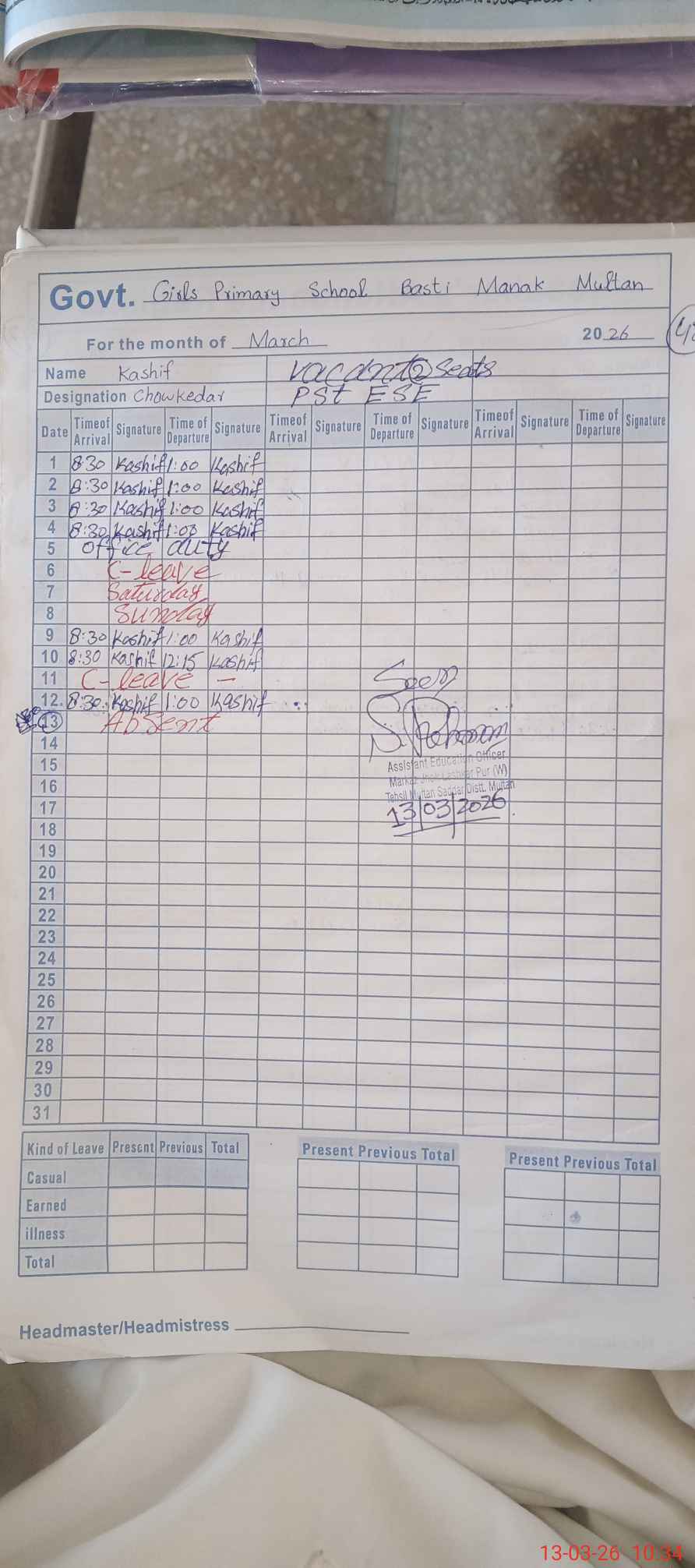 | 36**** | Mu**** Ka**** | CHOWKIDAR | 0 | 0 | 0 | 0 | 0 | 0 | 0 | 0 | 0 | Absent (Un-Authorized) | |