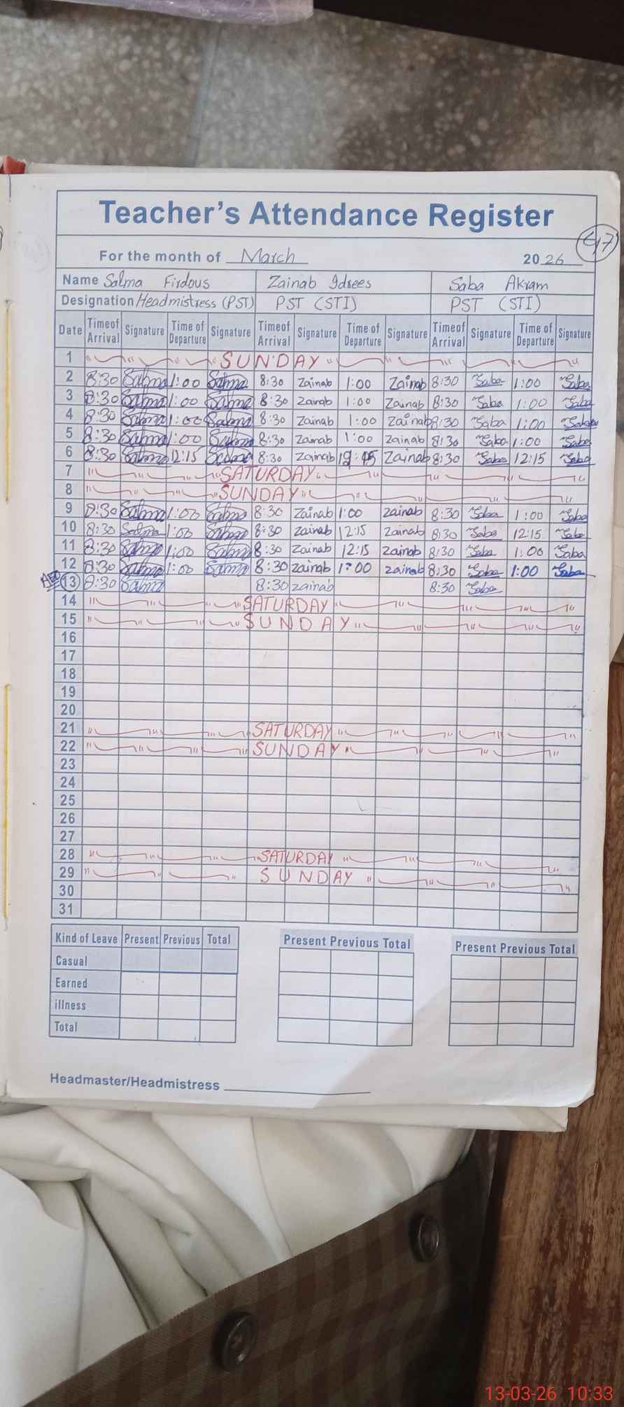 | Name: Sa**** Fi**** Designation: (School Headmaster's/Headmistress's) PST Phone/Cell Number: 03**** |