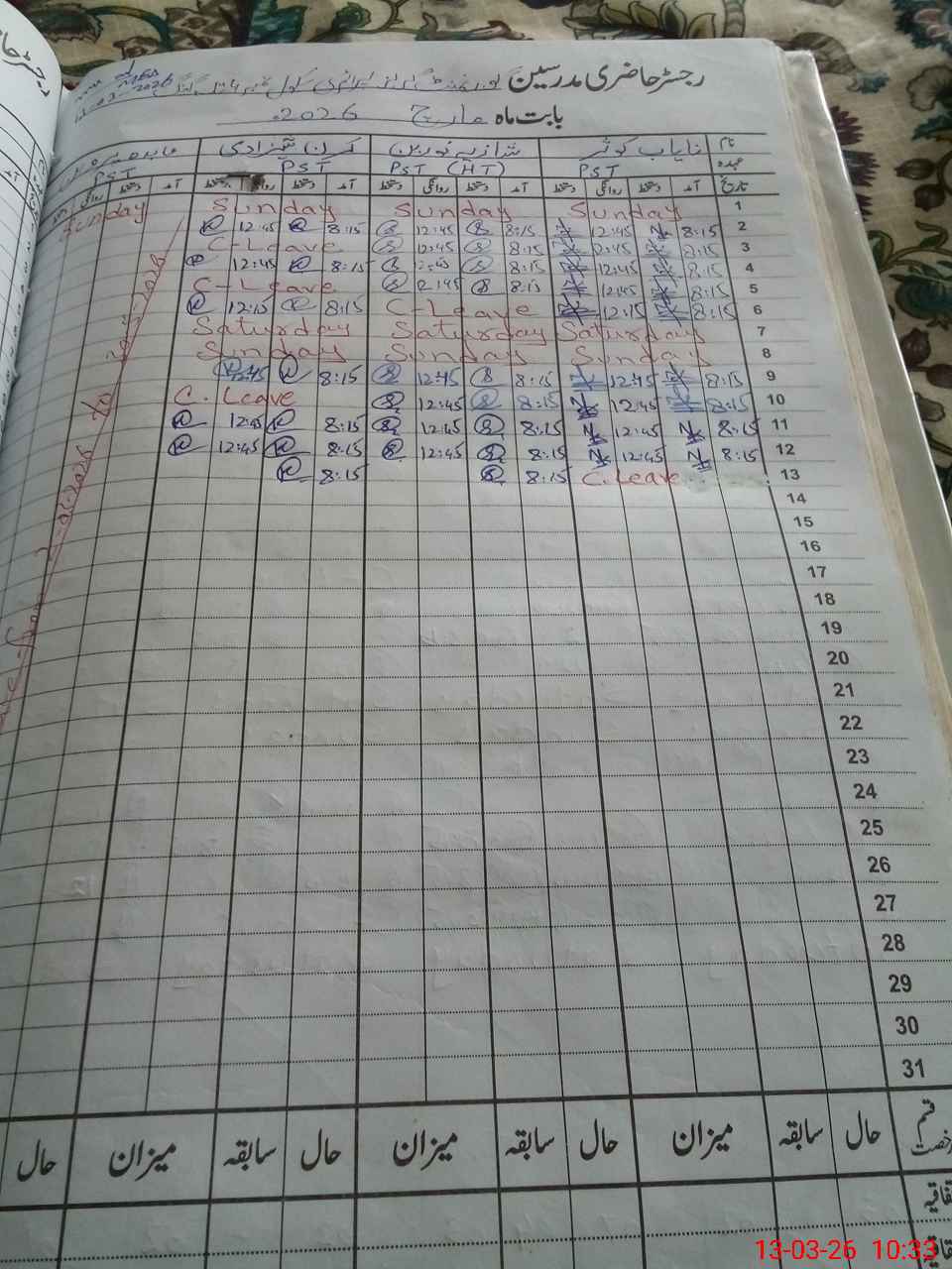 | Leave | Duty | Absent | Maternity | Medical | Ex- Pak |